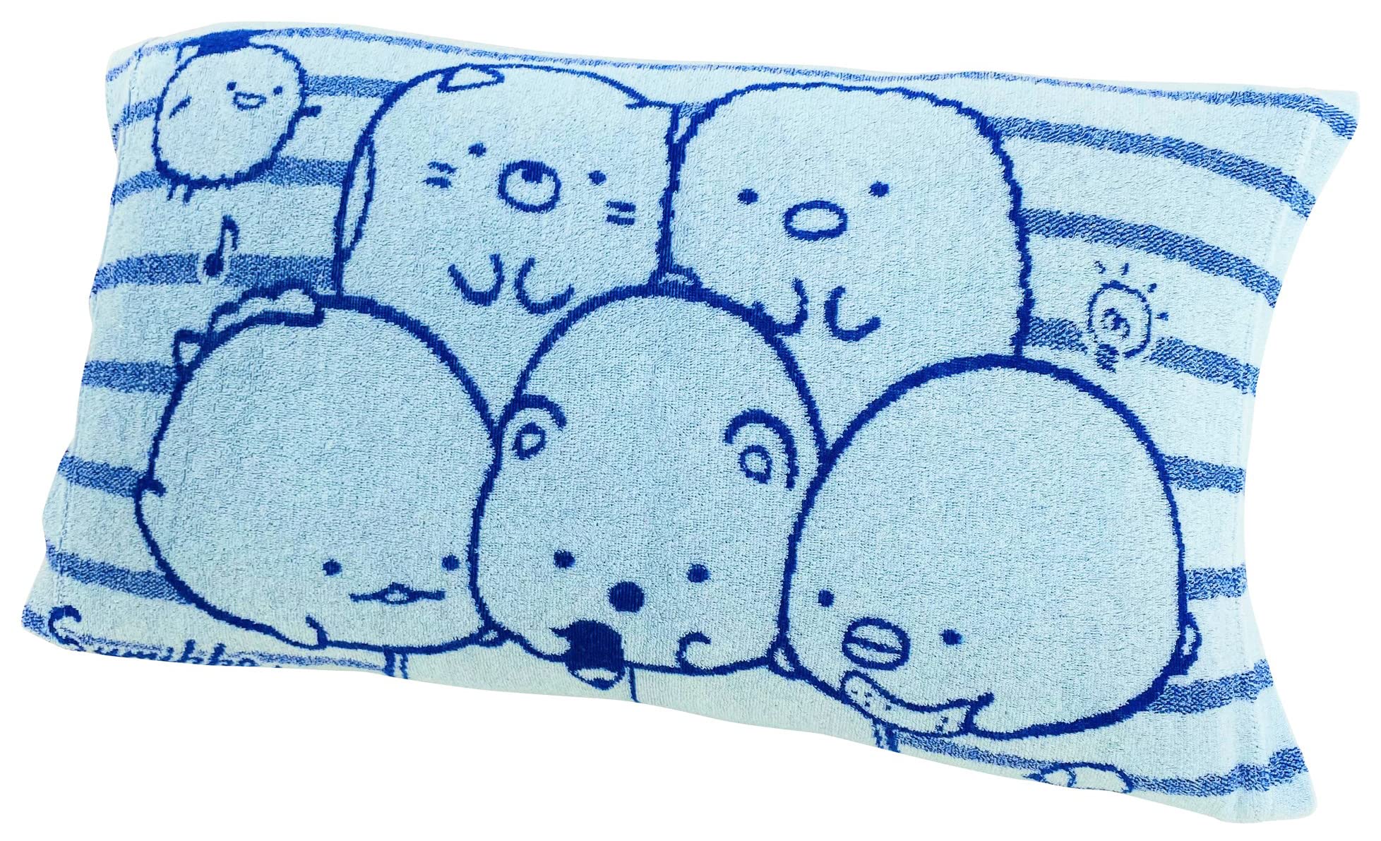 MORIPiLO すみっコぐらし 枕カバー タオル地 とかげ (ふんわり快適 のびのびピローケース) 43x63 35x50cm 親子で使える 子供 大人兼用 洗える 可愛い グッズ ぬいぐるみ ブルー サンエックス キャラクター まくらのモリシタ