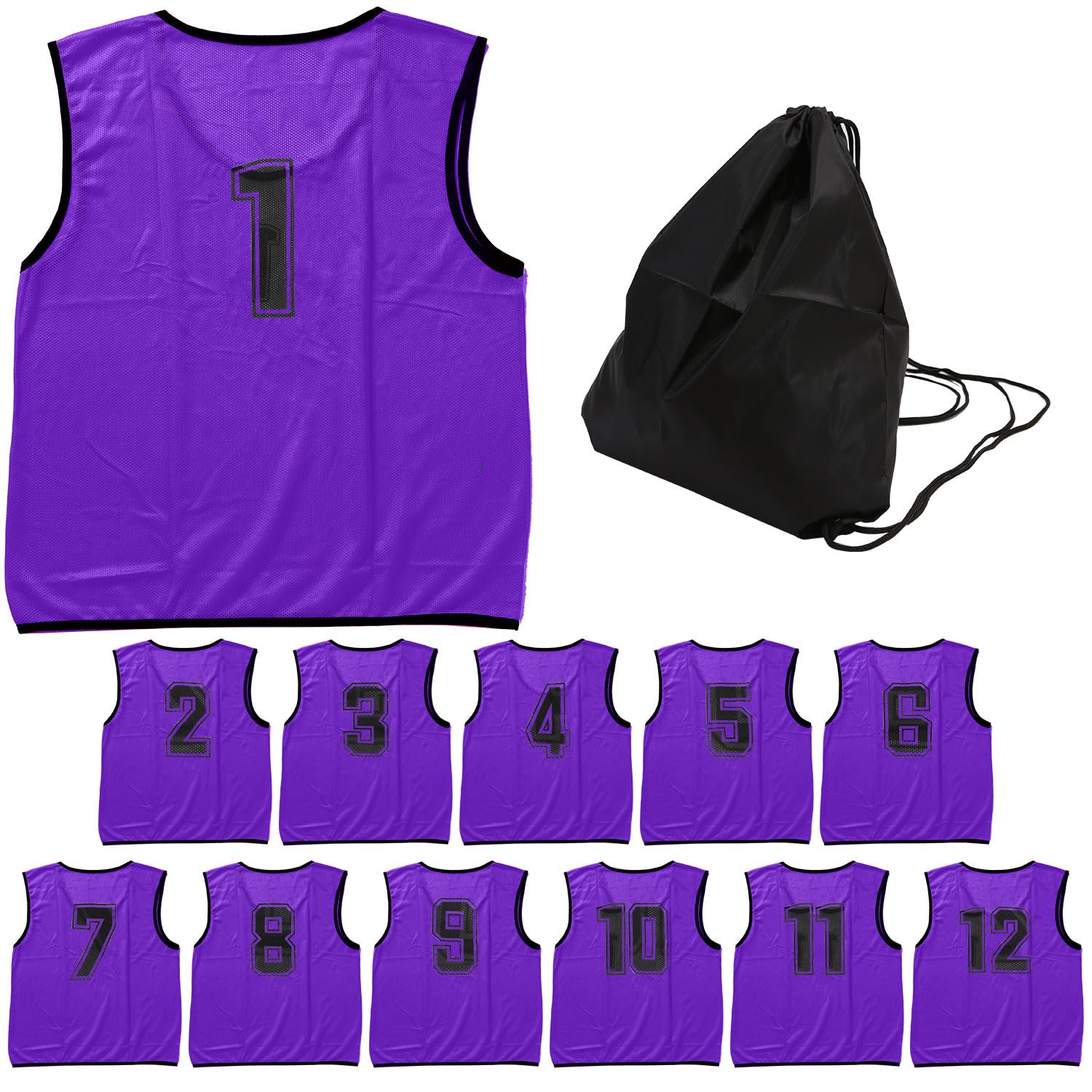 [ロジック] ビブス セット ゼッケン 収納バッグ付き 番号入り メッシュ サッカー バスケ フットサル 学校 行事 自治体 運動会 12枚セット