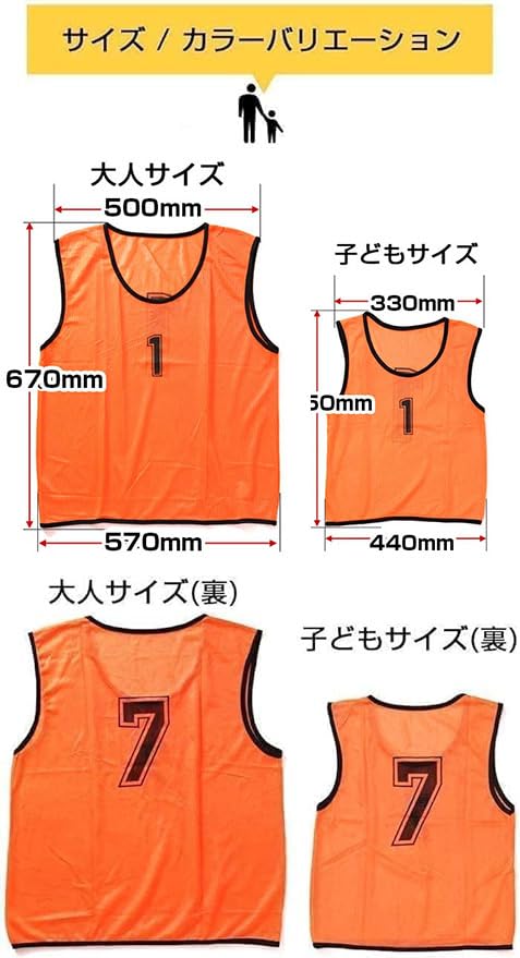 【番号入りビブス】グループ分けに使うナンバー入りのビブスです。サッカー バスケ バレーボール サークル 地域活動(自治体、PTA)などに便利です。※前後に番号が入っております。