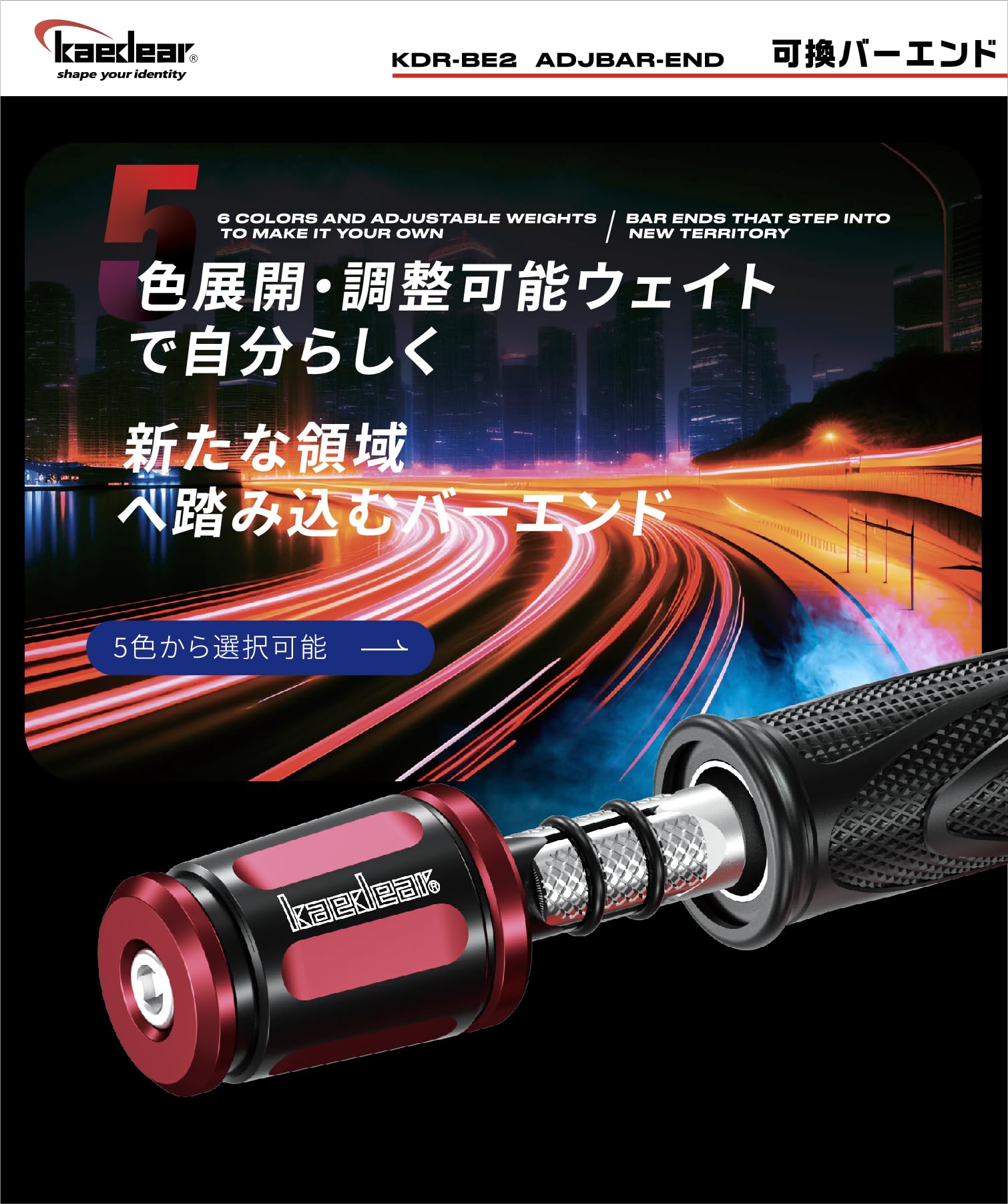 【可変バーエンド】 1つのバーエンドでウェイトが調整できる可変式バーエンド。バーエンドのデザインを変えることなく一つのバーエンドで複数の重さを体感できます。 重くする程ハンドルに伝わるエンジン振動が軽減される傾向にあります。 軽くする程セルフステアが向上し操作性が向上する傾向にあります。