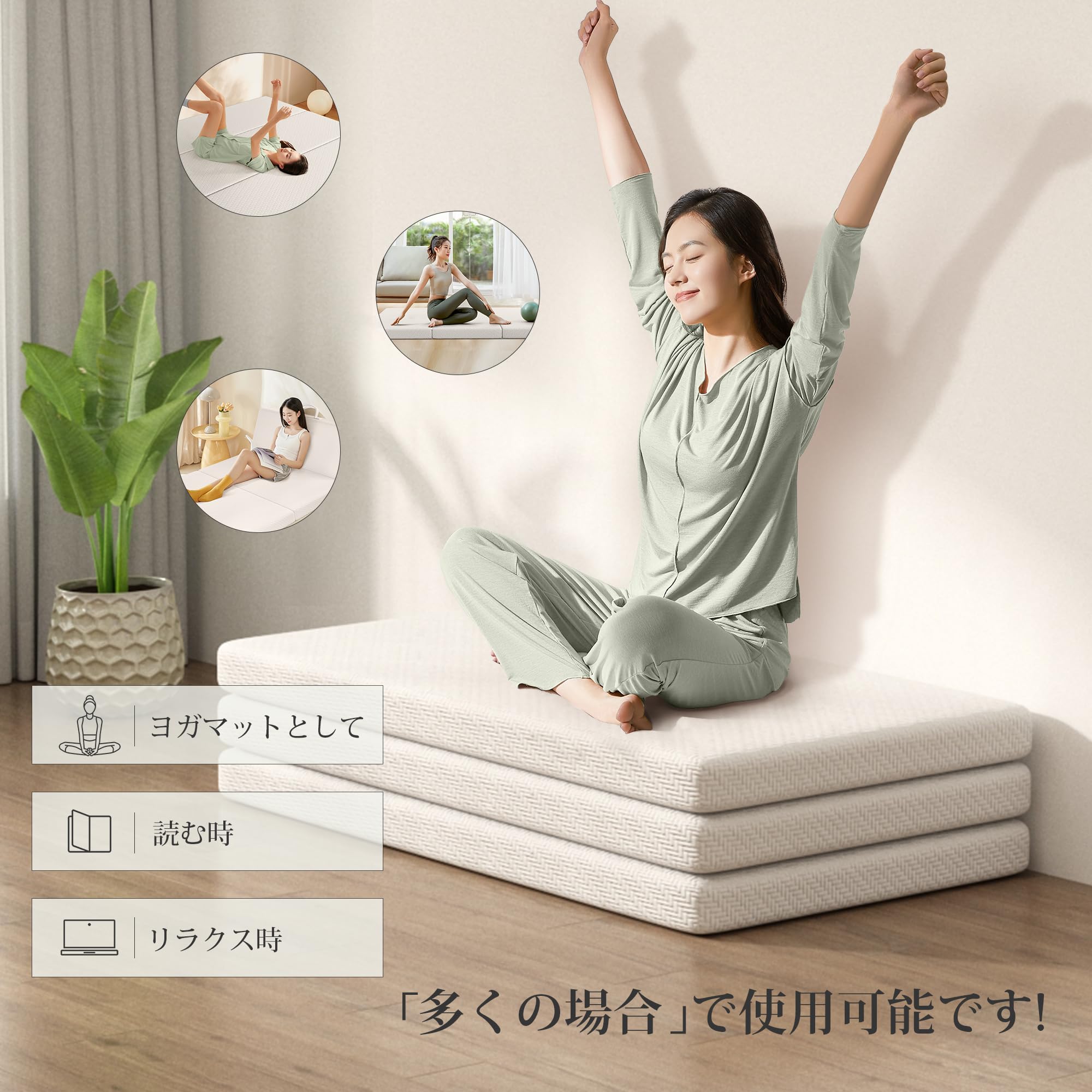 【収納便利×幅広い用途】軽量で持ち運び便利、収納スペースが小さい、薄型の三つ折りマットレスは、リビングルーム、オフィス、ホテルなど、さまざまな場所で使用できます。軽量性により、いつでもどこでも利用できます。収納も楽々!