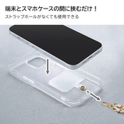 透明シートを挟むだけ!全端末対応。端末とスマホケースの間に挟む透明シート同梱。長さ調整不可。ストラップ全長約120㎝。