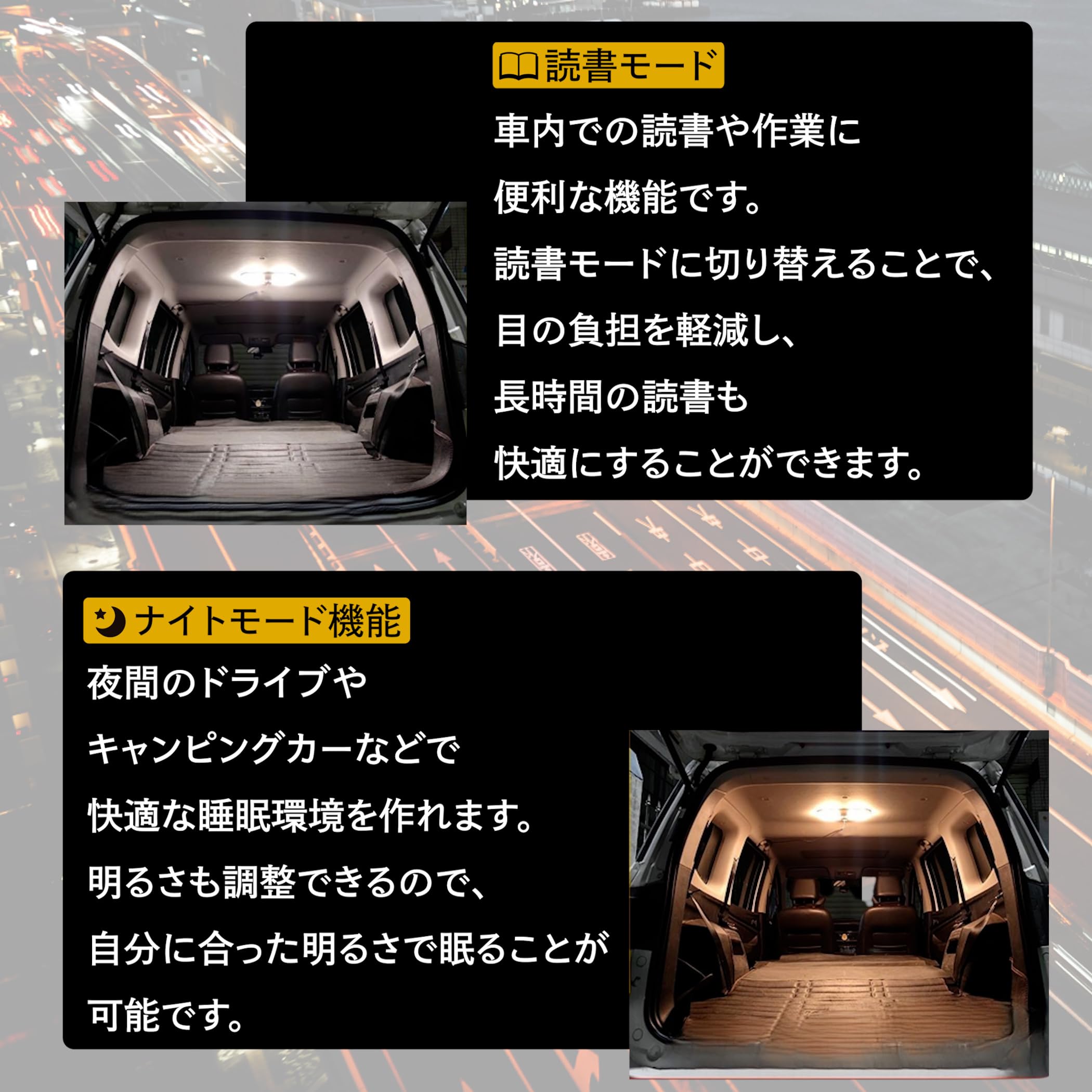 超高輝度 : このLED室内灯は、キャンピングカーに最適です。120連LEDチップを搭載しており、純正の灯りよりも明るく、最低でも2倍以上の明るさを提供します。さらに、消費電力も大幅に削減されており、省エネでありながら高い発光効率を実現しています。また、超軽量な設計なので、室内での作業もスムーズに行うことができます。