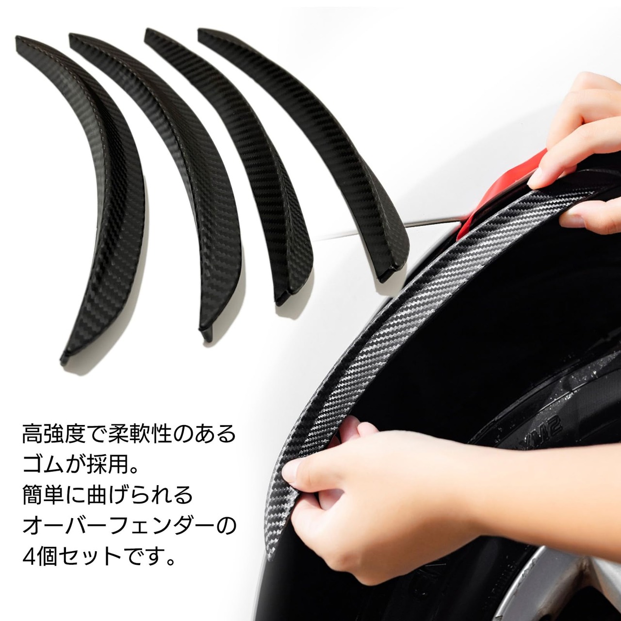 高強度で柔軟性のあるゴム素材を使用しており、簡単に曲げられるオーバーフェンダーの4個セットです。汎用品のため、車種により一部加工が必要になる場合がありますので、予めご了承ください。車のドレスアップに最適です。