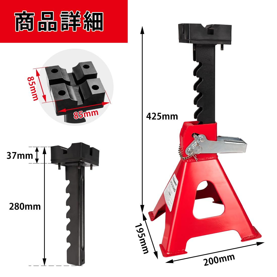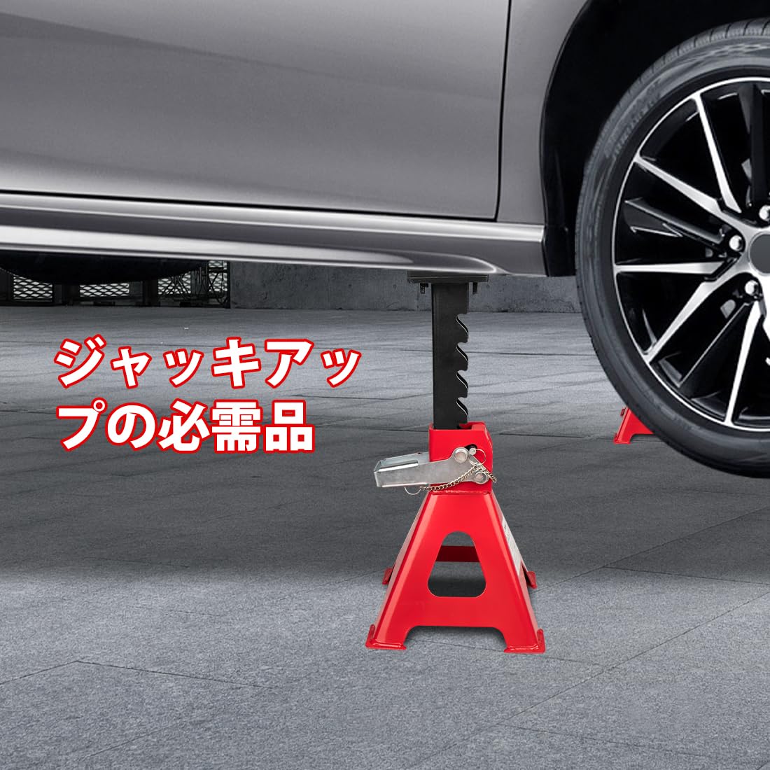 Donext ジャッキスタンド 3t 2個セット 高さ6段調節 最低位290mm/最高位425mm ダブルロック式 ラバーパッド付 レッド