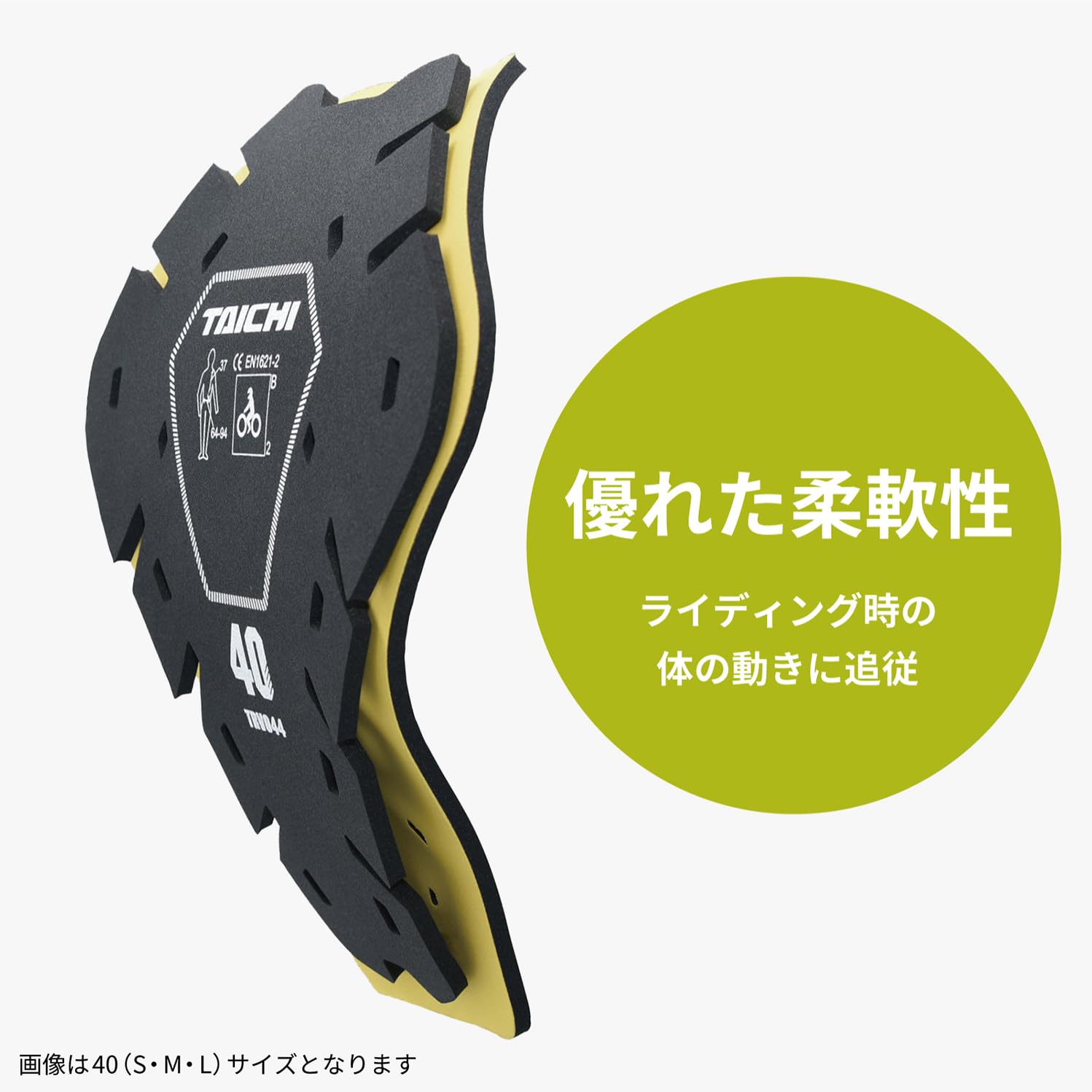 CE規格レベル2をクリアした、 TAICHIジャケット標準装備のバックプロテクターをアップグレードするためのオプション品。ソフトな付け心地と優れた柔軟性で、ライディング時の体の動きに追従します。※2011年秋冬以降発売のジャケットに対応