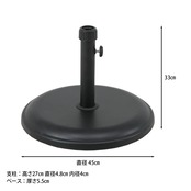 不二貿易 パラソルベース 15kg 幅45×奥行45×高さ33㎝ ブラック ガーデン パラソルスタンド ボルト固定 75817
