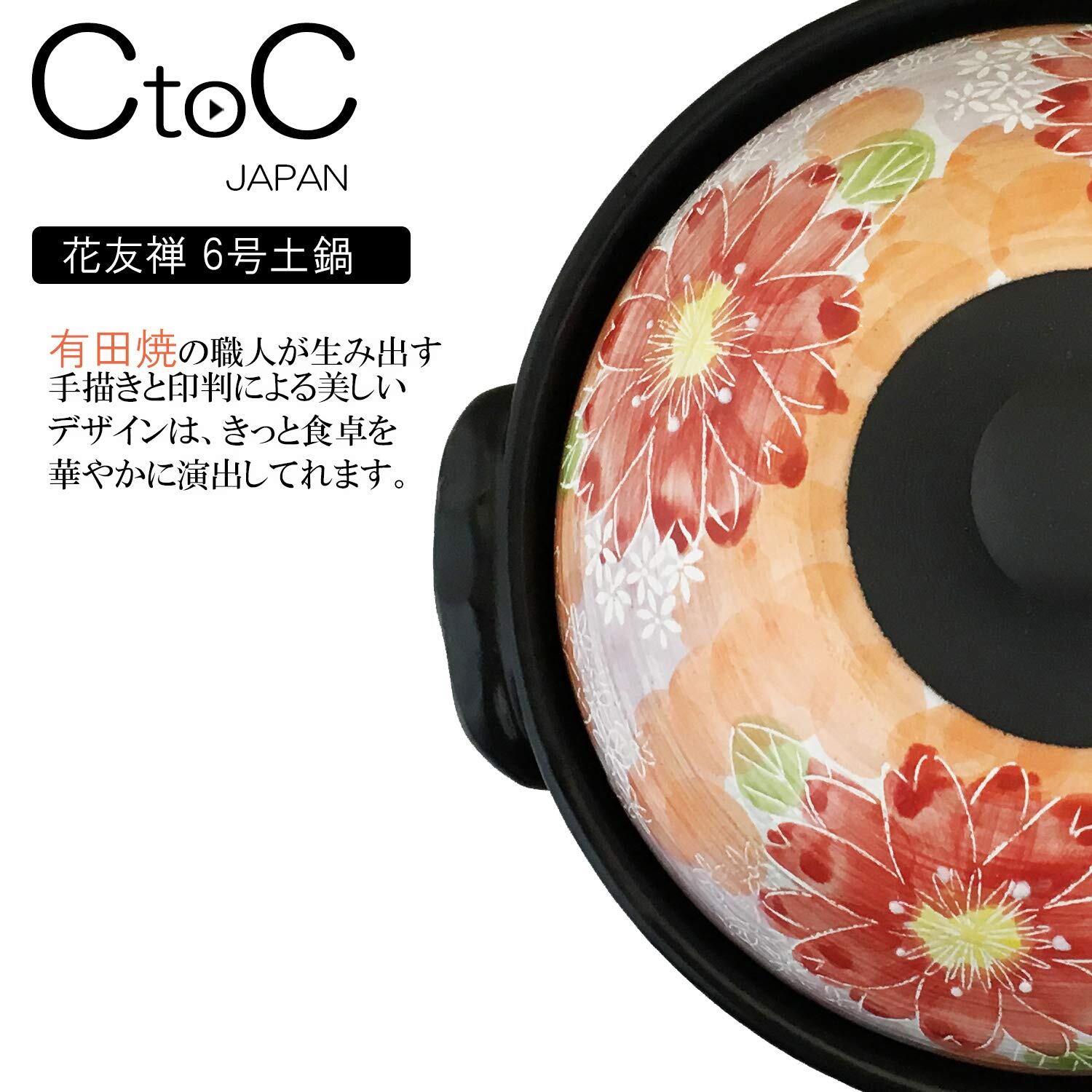 CtoC JAPAN 土鍋 レッド 900ml 土鍋 一人用 二人用 花友禅 6号青 日本製 有田焼 萬古焼 G-2
