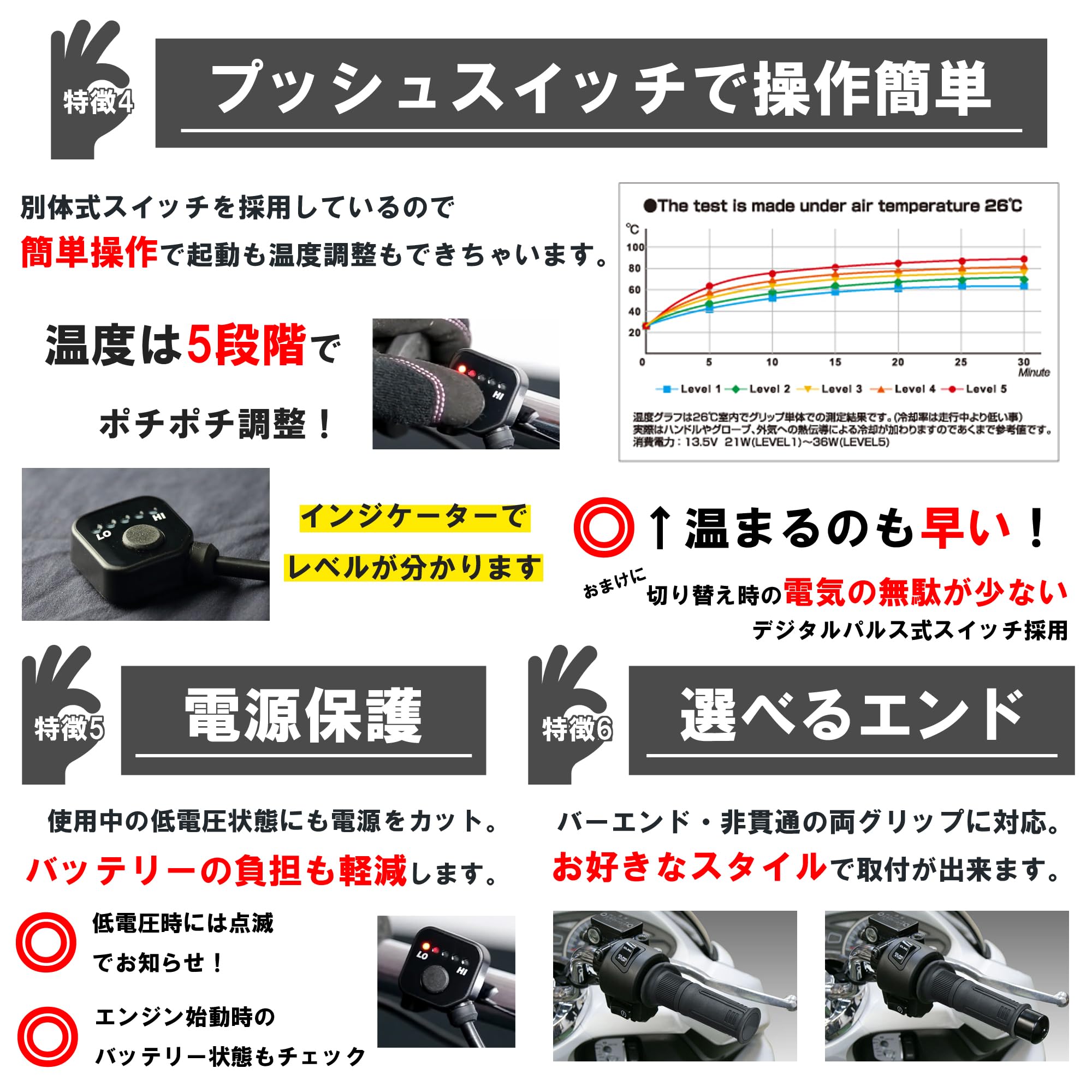 キジマ(Kijima) バイクパーツ グリップヒーター GH08 スイッチ別対式 120mm プッシュスイッチ φ22.2用 304-8203