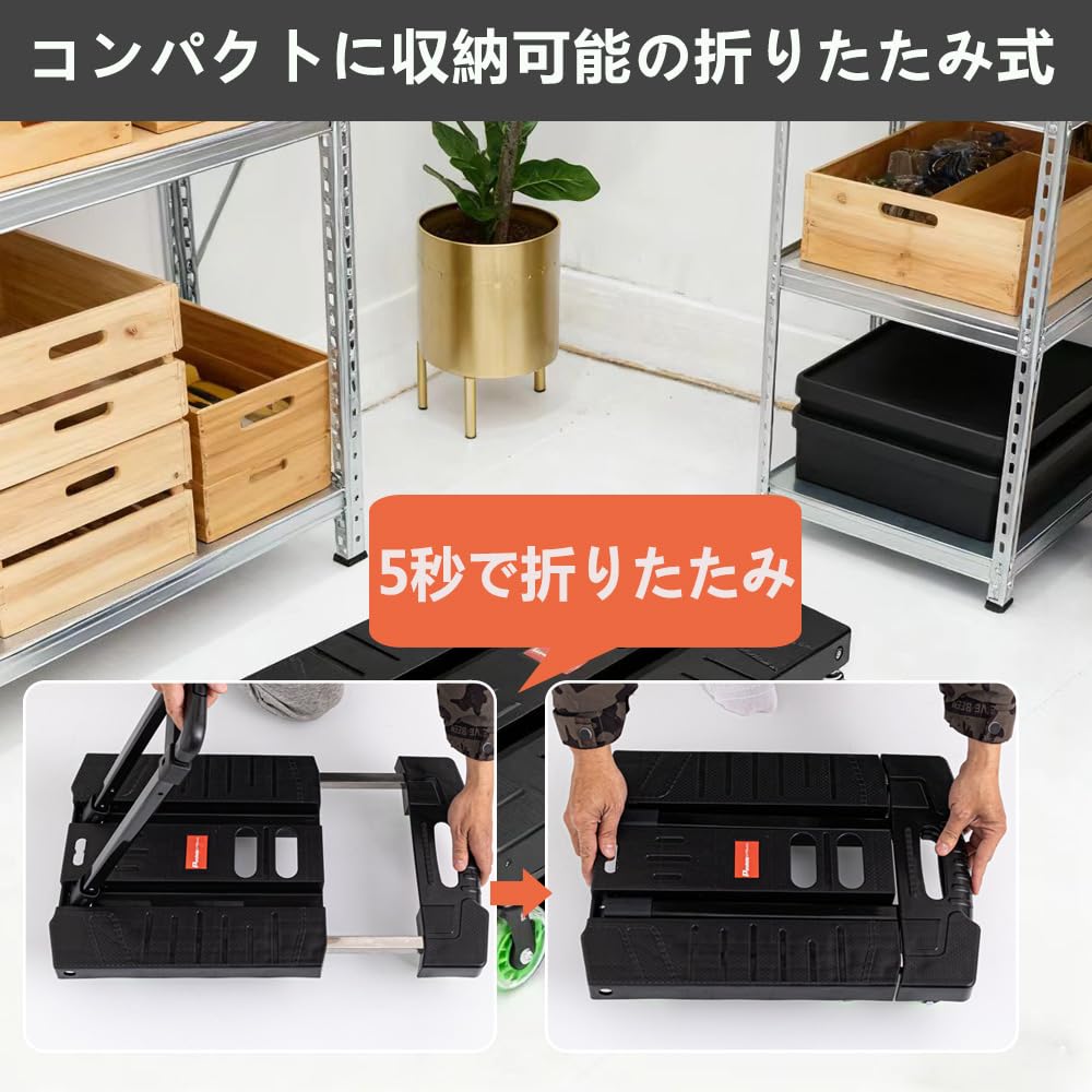 【特価セール】Paulele(パウレレ)台車 折りたたみ式 カート軽量 静音 キャリーカート車輪 タイヤ大きい 防災グッズ 防災用品 避難 アウトドア荷物運びに便利 耐荷重:250kg | ニコニコSHOP