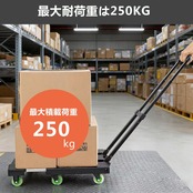 ▼重い荷物も運べる荷台:耐荷重250kgで重く大きなサイズの荷物でも大丈夫。荷台には伸 縮 自在のハンドルが付いて、14cmを拡大しており、積載面積を十分に利用。