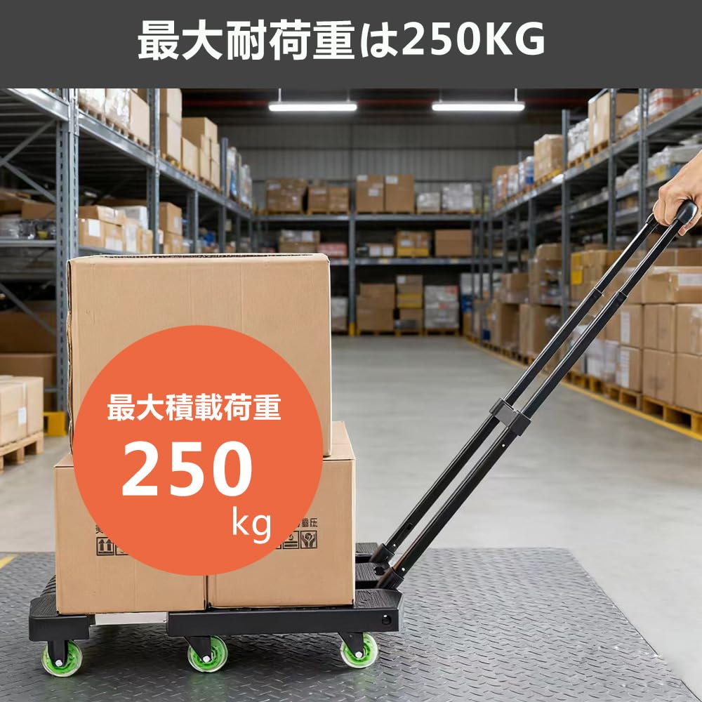 Paulele(パウレレ)台車 折りたたみ式 カート軽量 静音 キャリーカート車輪 タイヤ大きい 防災グッズ 防災用品 避難 アウトドア荷物運びに便利 耐荷重:250kg