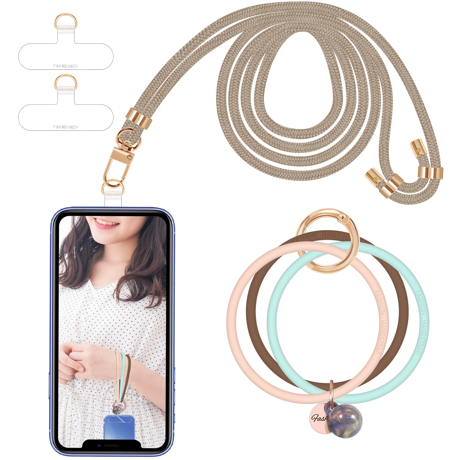 「シリコーンリングとストラップの組み合わせ」ストラップとシリコーンのセットで販売しています、両方の色が相性のいい組み合わせで、服に合わせる用のアクセサリーとしても、両手解放しながら斜め掛けできるのストラップでも、お出かけの選択肢が広けます。