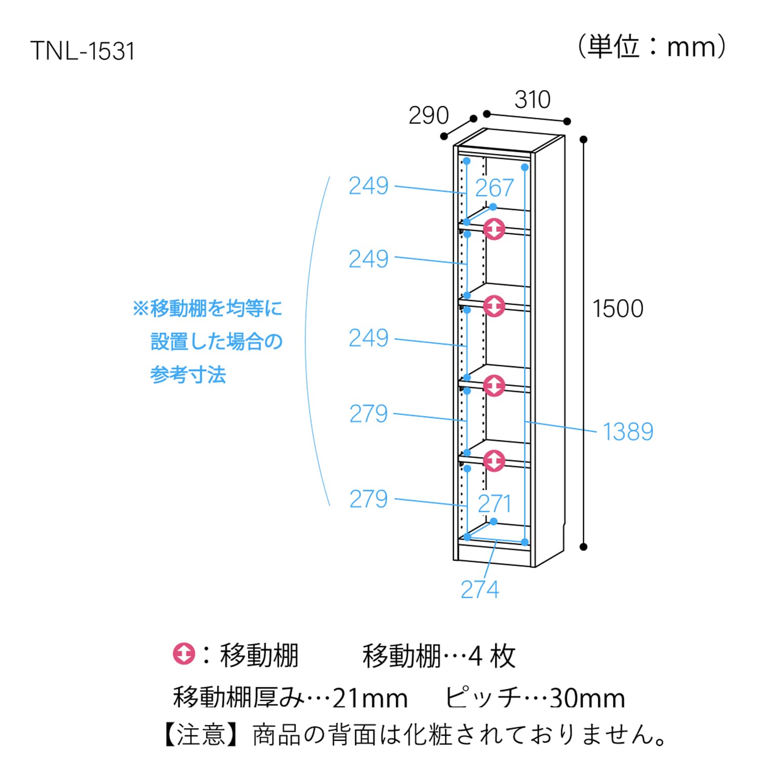 白井産業 組み合わせ自由なフリーラック 隙間収納 シェルフ 本棚 豊富なサイズバリエーションでどんな部屋にも合わせやすい 棚板耐荷重10kg ナチュラルブラウン 幅31 高さ150 奥行29cm TNL-1531NA タナリオ