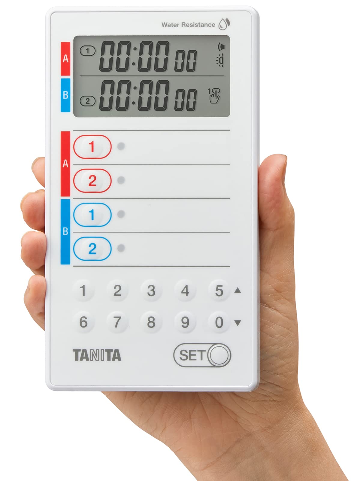 プリセット機能でワンプッシュスタート、業務用途でも使いやすい便利な多機能タイマーよく使う設定を4種類登録できるプリセット機能搭載2つの時間を同時計測可能メロディと光で分かりやすくお知らせ使用する場所に合わせて音量や鳴動時間も変更できる長時間管理できる100時間計ラベルシールを貼れるから何を設定したか分かりやすいお手入れもしやすい、洗えるタイプ【スペック】・設定時間:最大99時間99分99秒 1秒単位 (カウントダウン)・計測時間:最大99時間59分59秒 1秒単位 (カウントアップ)・音量:大 (80dB)・小 (70dB)・オフ・鳴動時間:1秒~9分99秒 1秒単位・付属品:防水等級:IPX5・その他:強力マグネット、フック穴付き