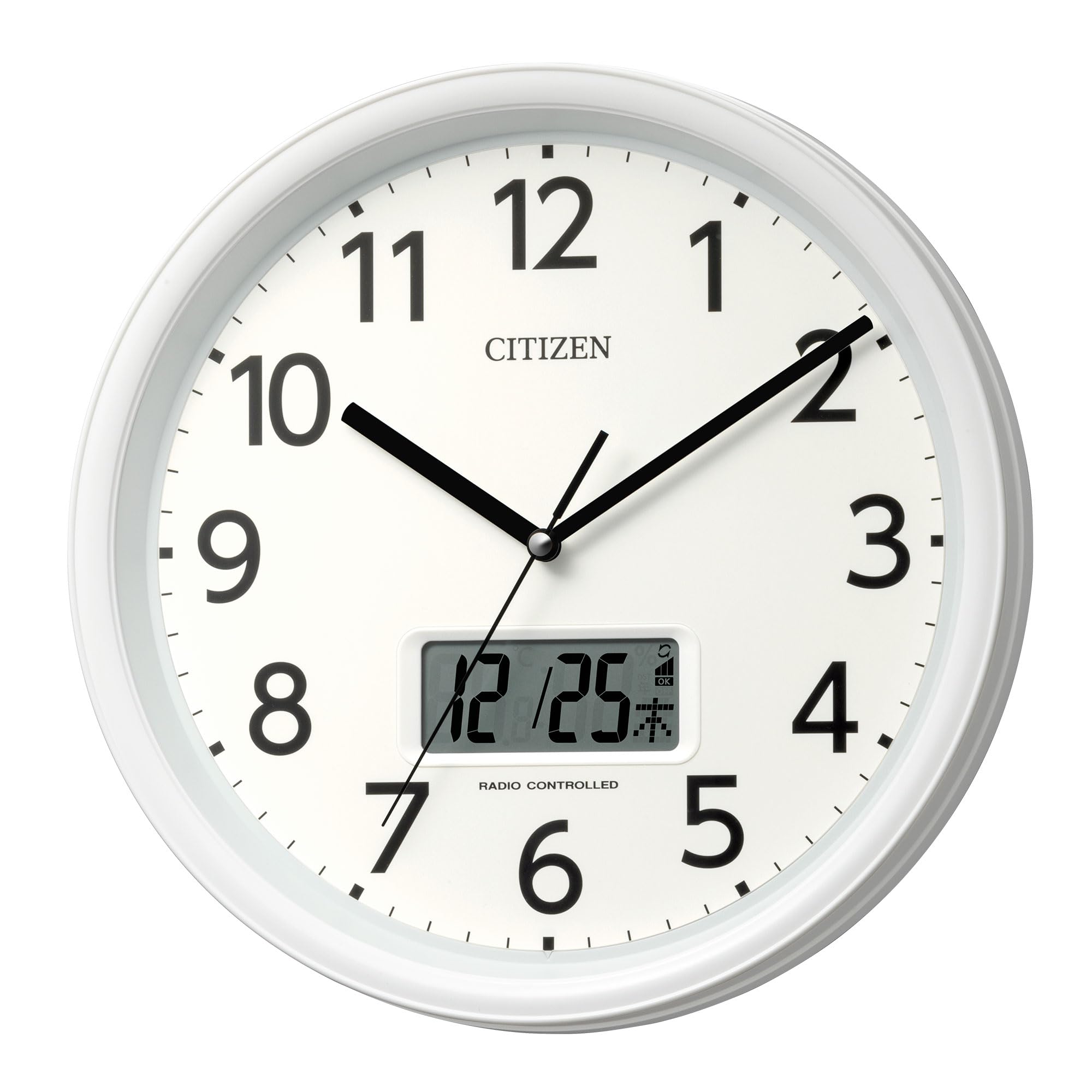 【在庫セール】リズム(RHYTHM) シチズン 掛け時計 電波時計 アナログ 温度 湿度 カレンダー (デジタル 液晶表示) 静かな 連続秒針 白 Φ30x5.1cm CITIZEN 8FYA05-003 | ニコニコSHOP