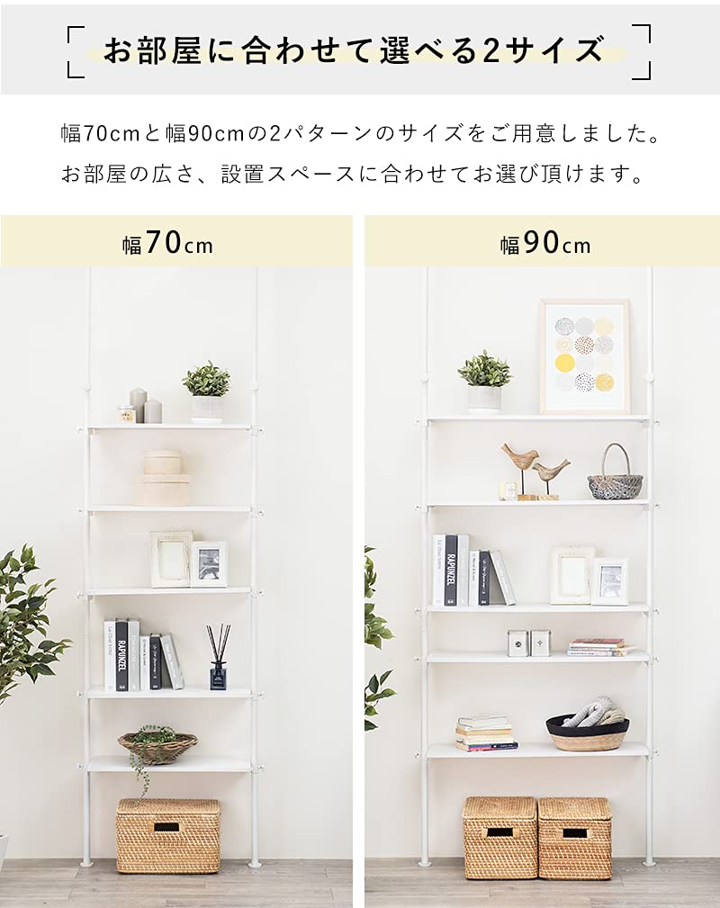 【新着商品】萩原 オープンシェルフ ラック 突っ張り棚 つっぱりラック ディスプレイ 趣味 【水・汚れに強いメラミンシート棚】 5段棚 幅90 無段階調節 ホワイト×ホワイト KTR-3156SW | ニコニコSHOP