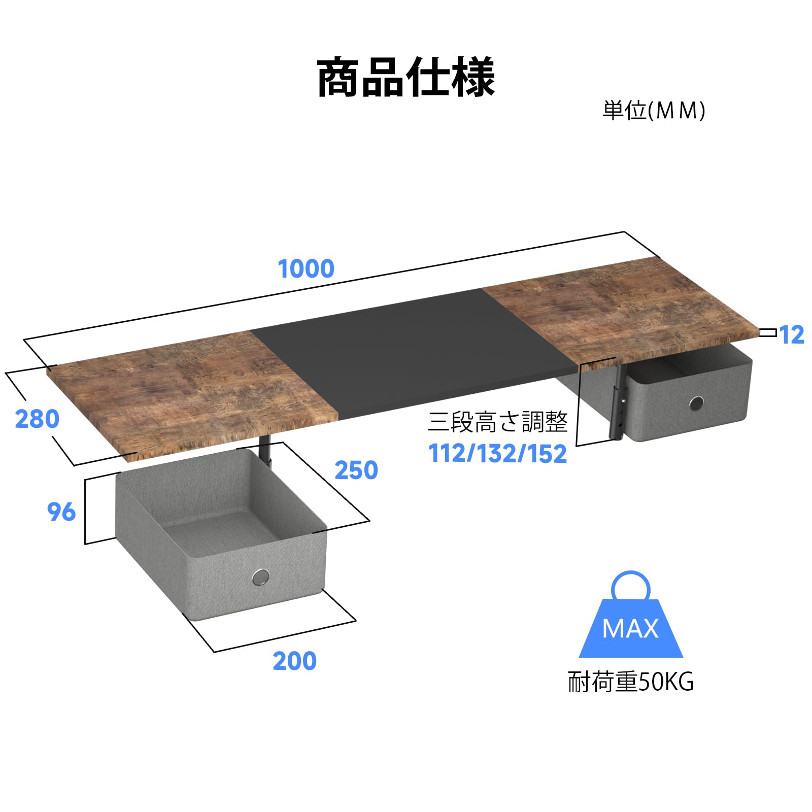 【特価セール】suptek 引き出し付き机上台 ディスプレイ台 モニタスタンド コンピュータモニタースタンド 机上台 パソコン台 pc キーボード収納 文具収納 耐荷重45㎏ MST019 | ニコニコSHOP
