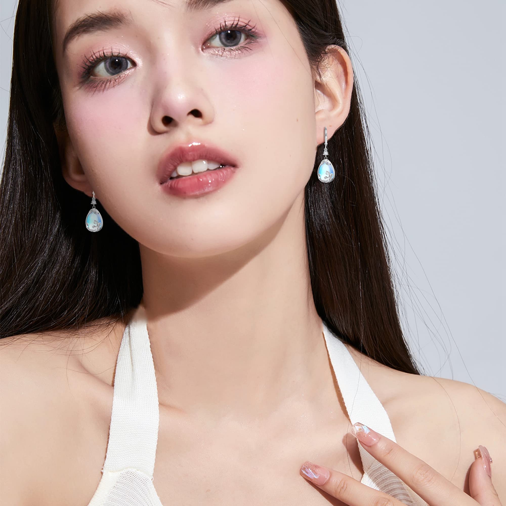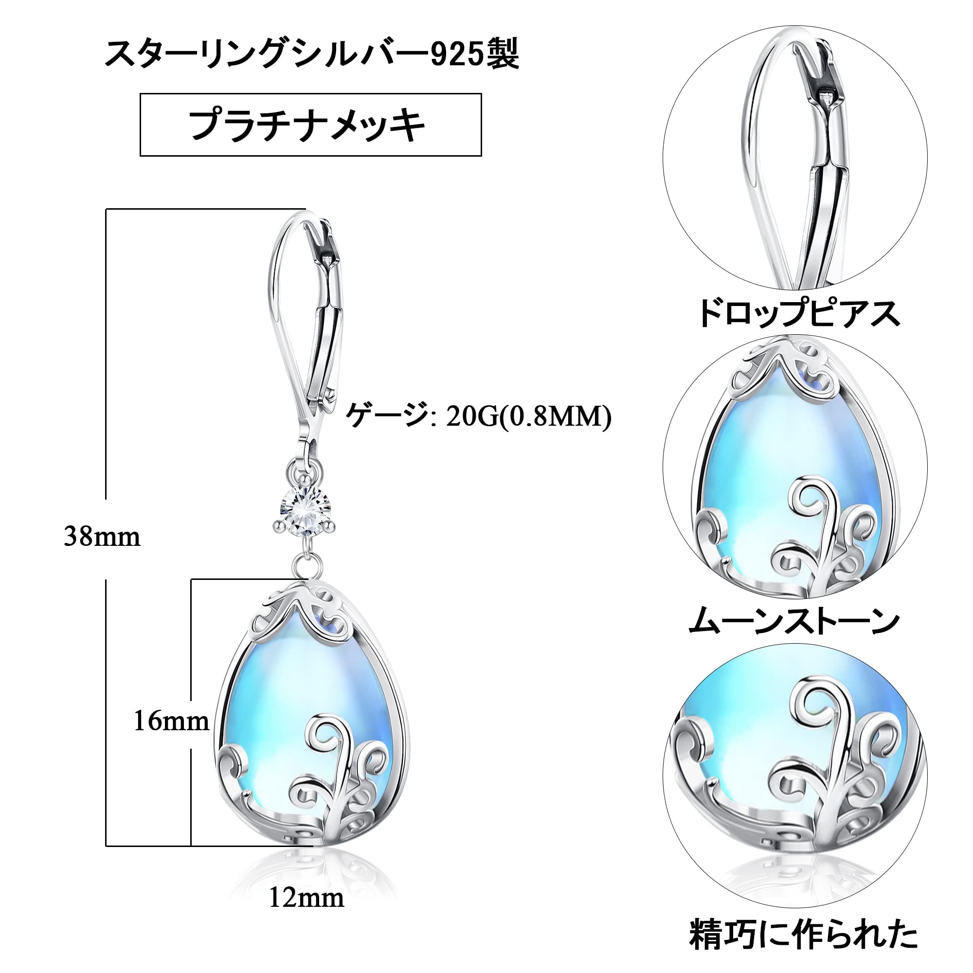LOYALLOOK ドロップ ピアス レディース 人気 ピアス しずく アレルギー対応 オパール ムーンストーン ピアス シルバー 925 プラチナ おしゃれ 女性 可愛い ゆれる ピアス ダングル アクセサリー 2個 誕生日 プレゼント クリスマス 記念日 キラキラ 揺れる ピアス