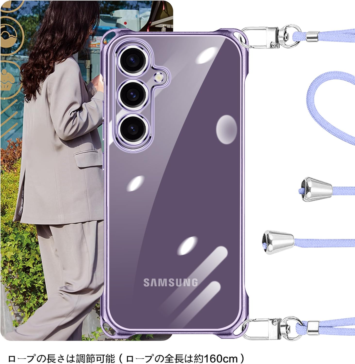 Samsung Galaxy S23 FE ケース クリア ギャラクシーS23 FE スマホケース SCG24 カバー 携帯カバー 米軍MIL規格取得 耐衝撃 全面保護 スマホケース ストラップ付き 肩掛け 斜めかけ 縄掛けケース 透明TPU レンズ保護 薄型 軽量 取り外し可能 落下防止 柔軟【パープル】