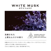 【人気のホワイトムスクの香り】洗練されたホワイトフローラルをベースに、心地よいフルーツがアクセントとなり、上質なムスクが優しく全体を包み込みます。どなたにも愛される、心地よい香水調の香りです。【TOP NOTE】 ラズベリー、グリーンアップル 【MIDDLE NOTE】ミュゲ、ローズ、ジャスミン【LAST NOTE】 アンバー、ムスク、サンダルウッド