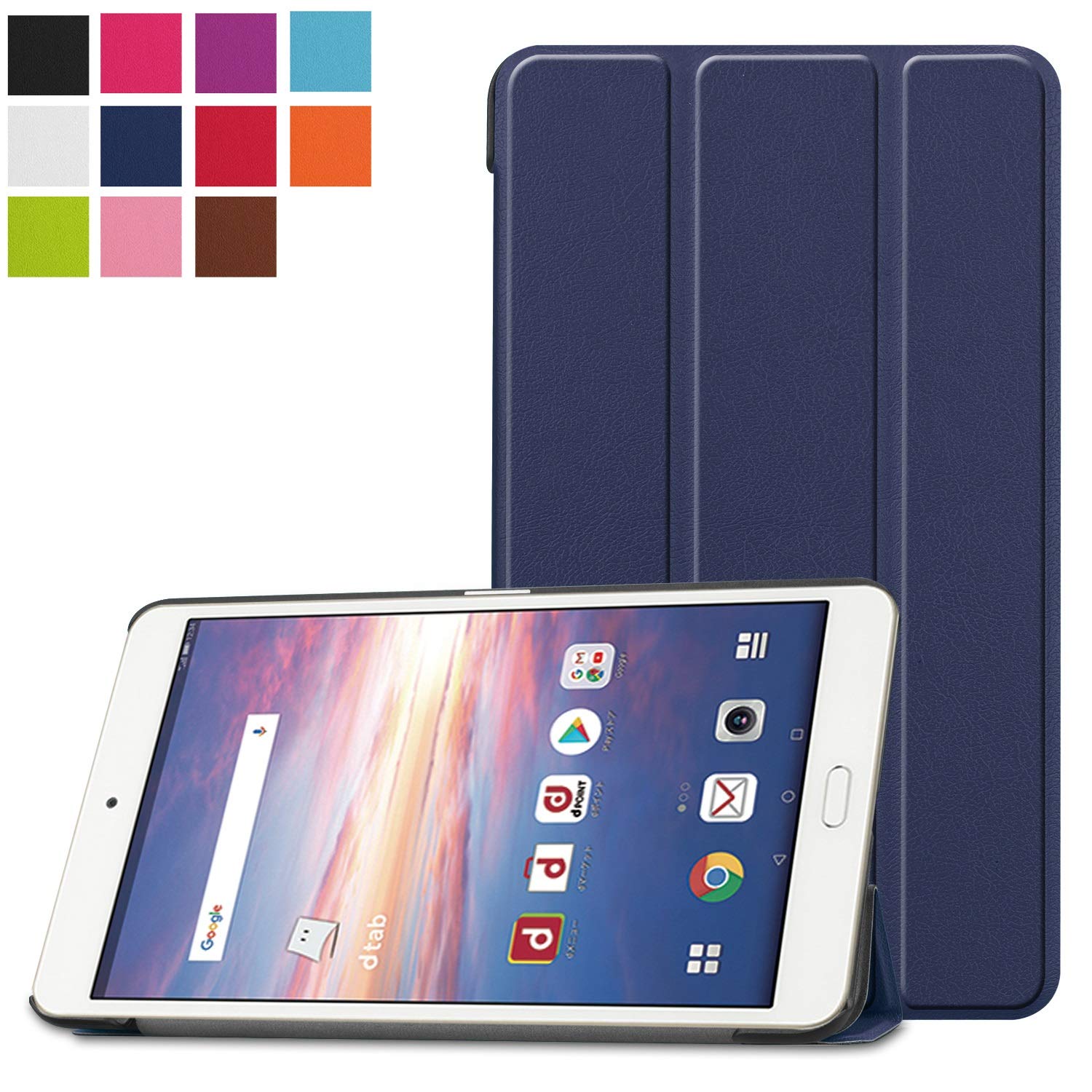 【特価セール】dtab Compact d-02K ケース LeTrade スタンド 機能付き 三つ折 高級PUレザー 超薄型最軽量 傷つけ防止 保護ケース カバー NTT docomo dtab Compact d-02K 8インチ専用 ネービーブルー | ニコニコSHOP