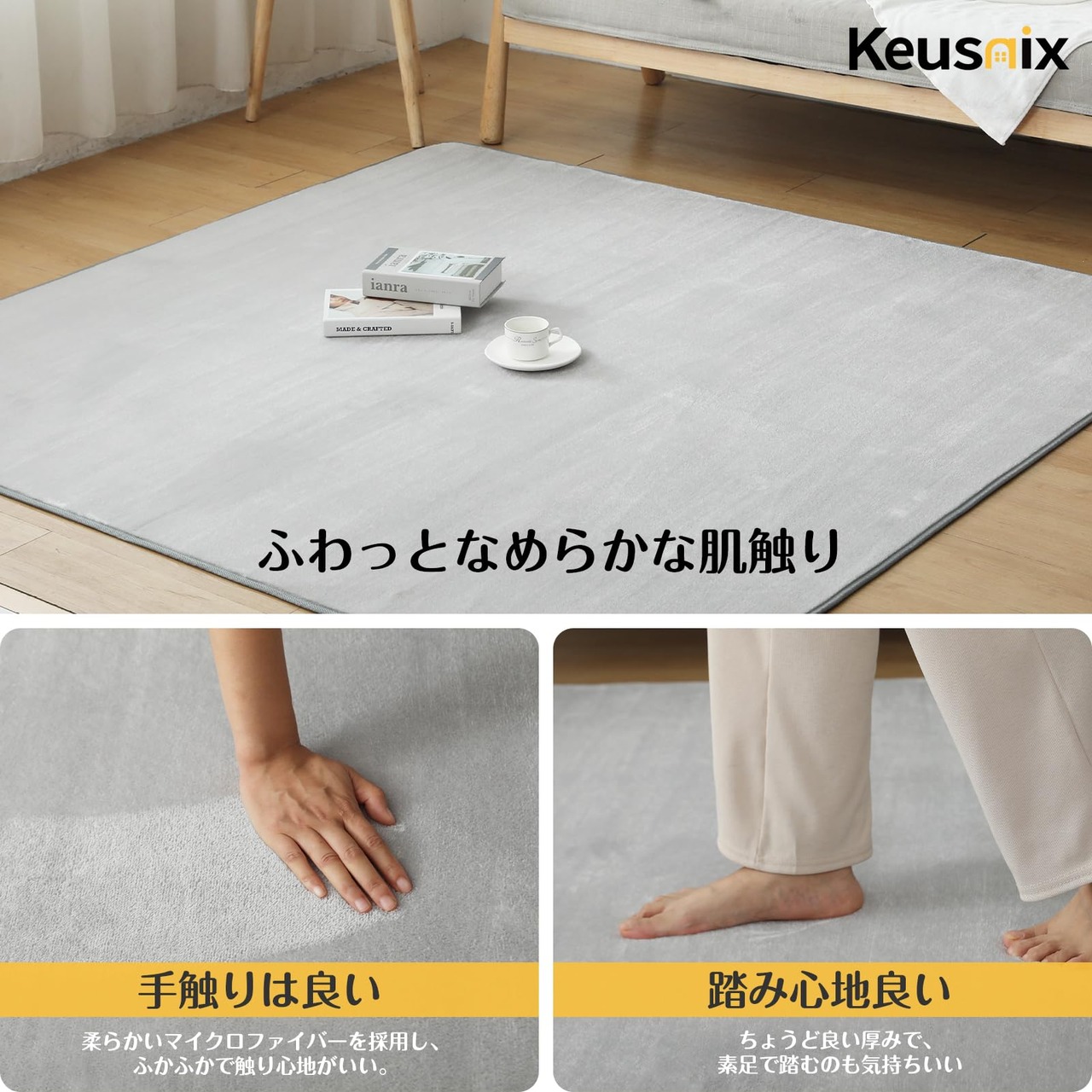 Keusnix カーペット ラグ ラグマット滑り止め付 洗える 135×185cm 約1.5畳 絨毯 防ダニ 抗菌 防臭 オールシーズン快適に使用 床暖房 ホットカーペット対応 ふわふわ肌触り フランネルラグ 無地 グレー
