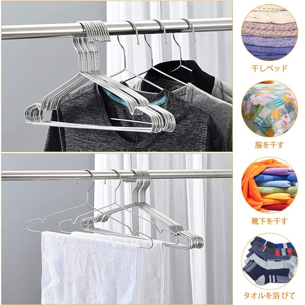 ステンレスハンガー 20本組 物干しはんがー 洗濯 頑丈 錆びにくい 曲がらない スカート シルバー ズボン コート 3.2mm 幅42cm