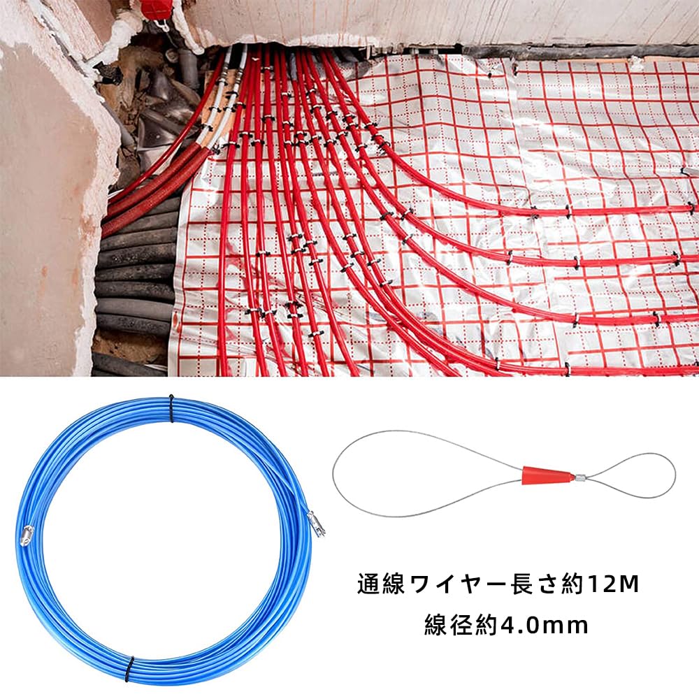 Renjzle 通線工具 12mスチールワイヤー 通線ワイヤー ジョイントワイヤー ロープ通し器 入線専用ワイヤー 紐通し