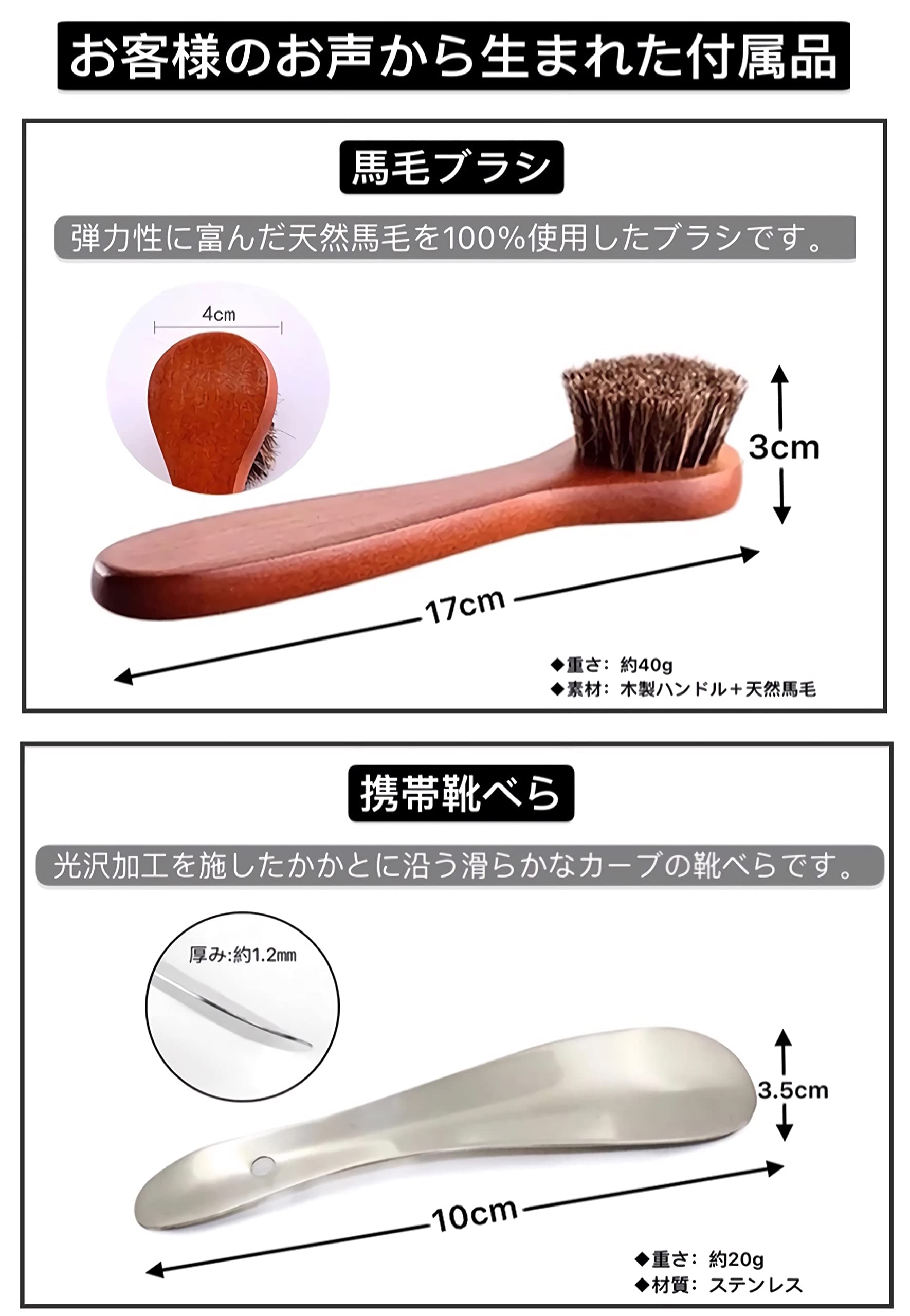 [Masetley] シューズストレッチャー シューキーパー シューズフィッター 靴サイズ調整 靴伸ばし プラスチック 靴擦れ 靴ズレ 馬毛プラシ 携帯靴べら付 メンズ レディース 二個セット 左右兼用