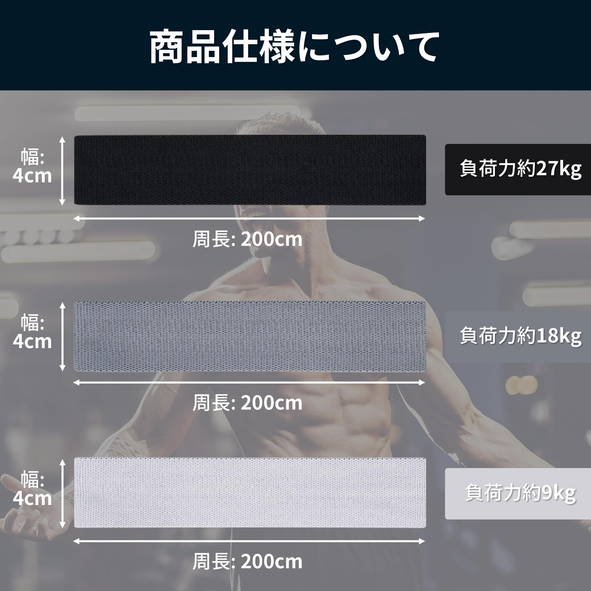 【54kgまでの負荷調整】:ライトグレー、グレー、ブラック三色セットのトレーニングチューブです。布製のトレーニングチューブですので、伸縮性を持ちながらお肌にやさしいです。ゴム臭いはなく、特にトレーニング途中で手のひらを傷つけることもありません。トレーニングチューブ3本を同時に使いますと、最高レベル54kgまでの負荷力に達します。