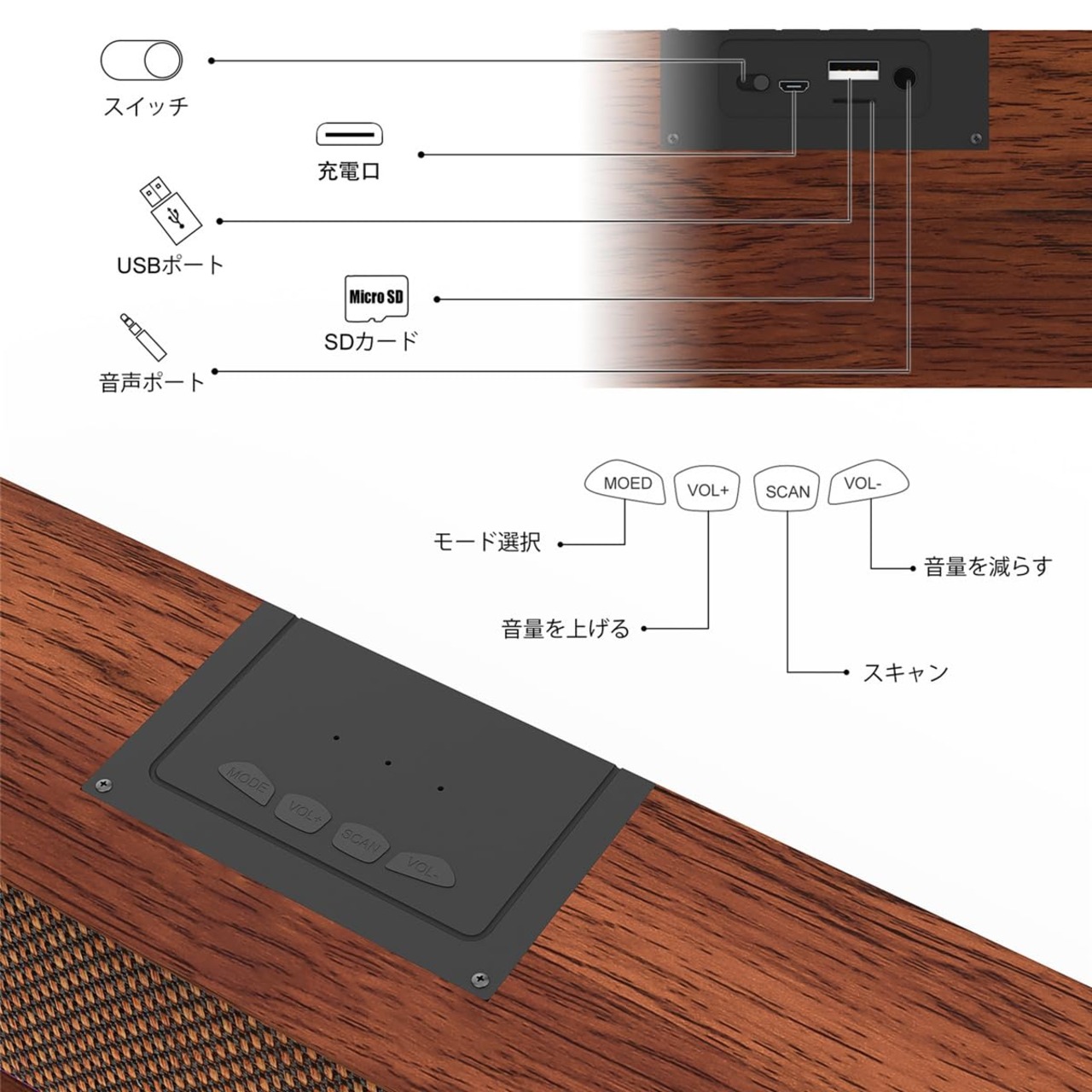 【当社が提供するもの】Smalody Bluetoothスピーカー*1、AUXケーブル*1、充電ケーブル*1、ユーザーマニュアル*1、24時間フレンドリーなカスタマーサービス。 全体的な木箱+豪華な巻き取り生地のデザインがこのBluetoothスピーカーをユニークにしており、愛する人への素晴らしい贈り物になるでしょう。