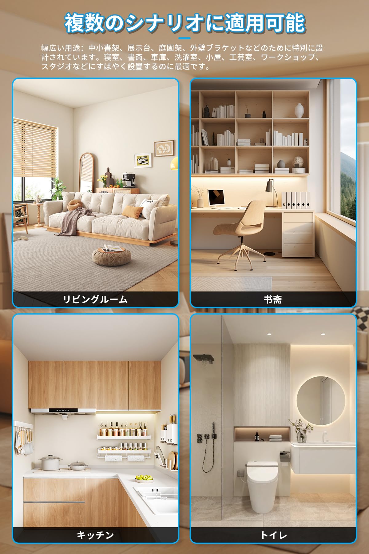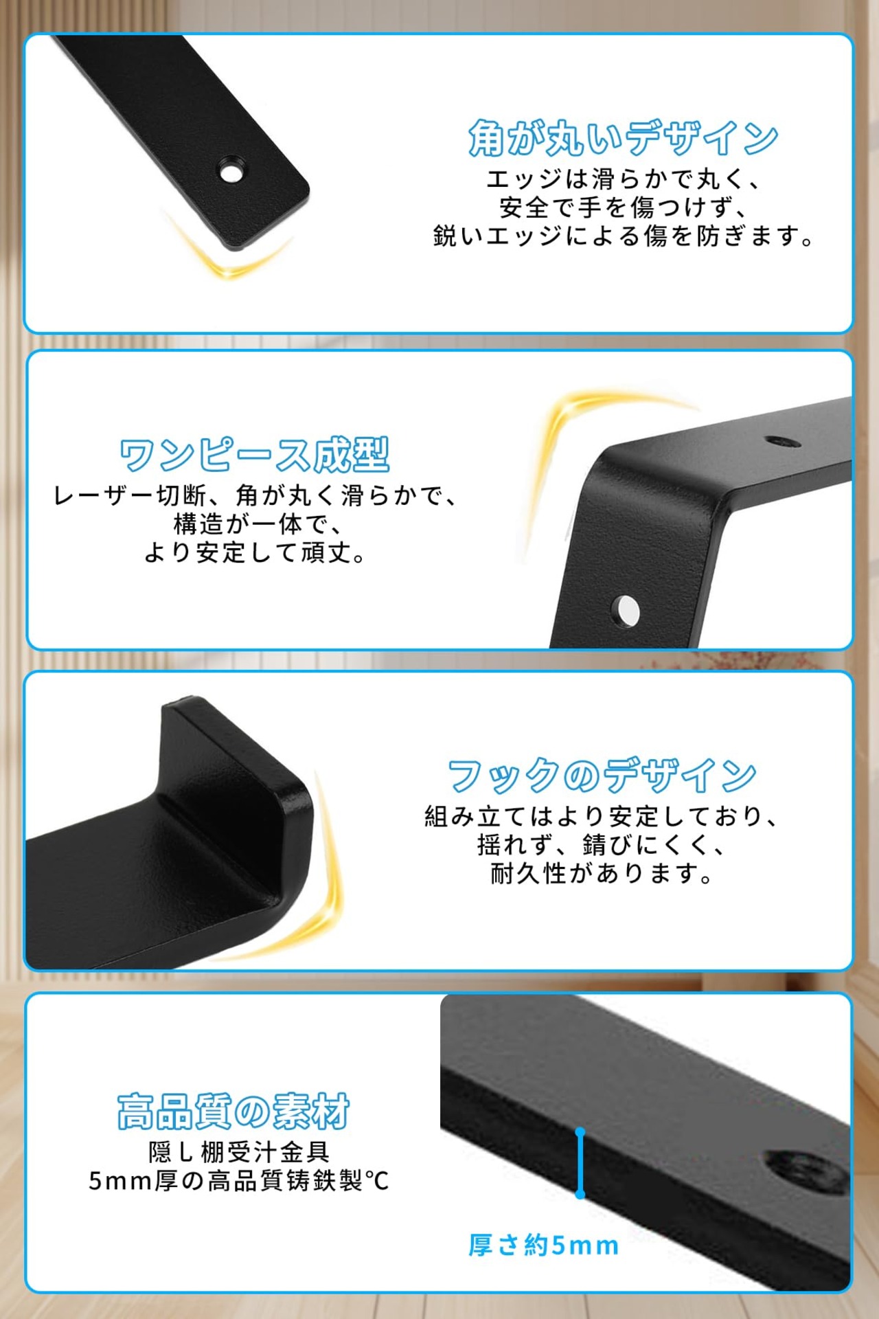 【優れた耐荷重能力】棚受け金具耐荷重は120kgまで、強い耐荷重性、頑丈で安定。 防錆、耐食性に優れ、屋外で使用しても錆びません。また、90度の直角の設計を採用して。防錆性と耐食性があり、室外で使用しても錆がついていません。