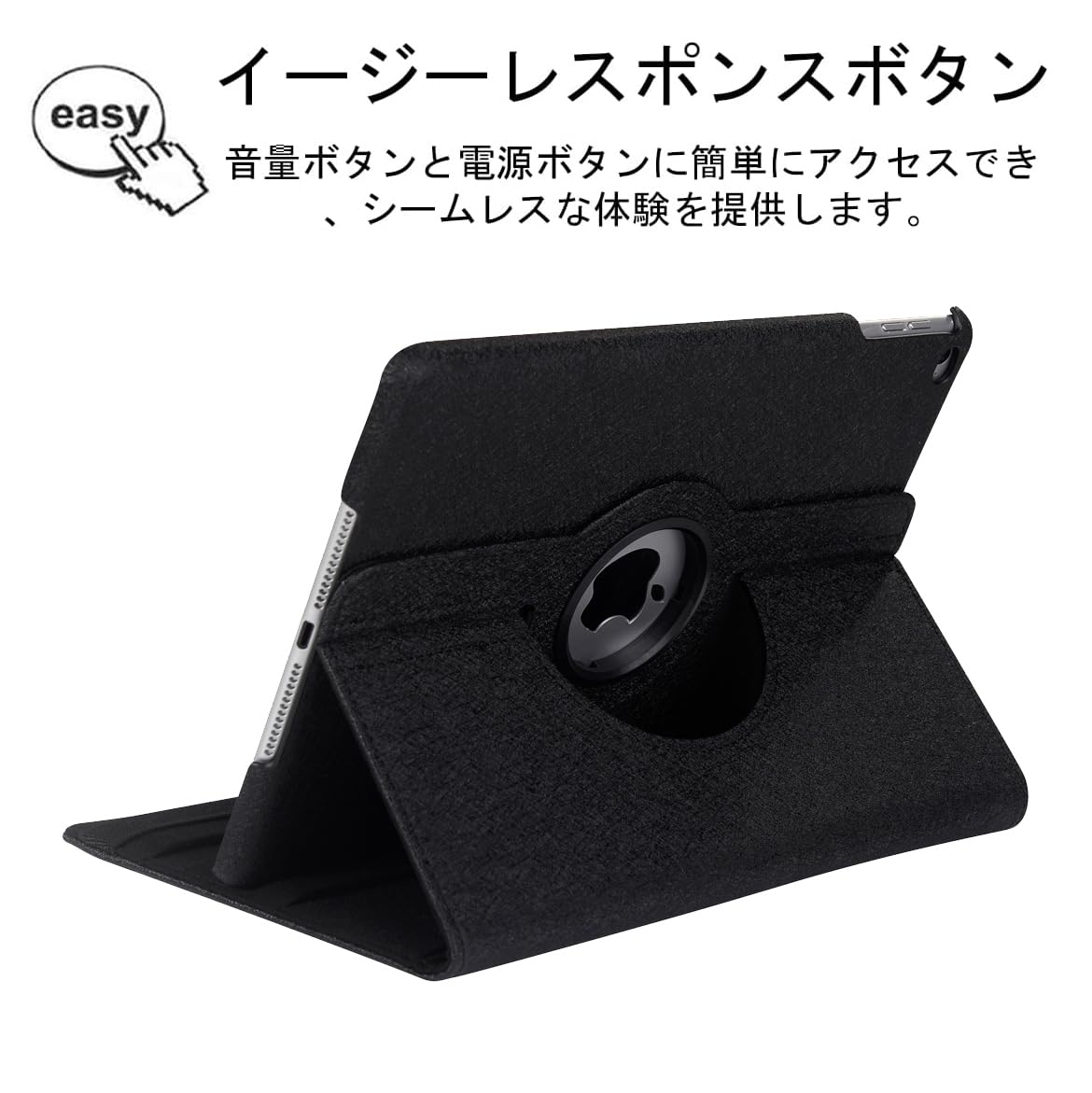【新着商品】iPad 9.7 2018 2017 / iPad Air 2 / iPad Air 1 ケース iPad 9.7インチ(第6、5世代)軽量 手帳型 360度回転スタンド オートスリープ機能 3段階調節可能 固定バンド 脱落防止耐衝撃 耐久性 (黒) | ニコニコSHOP