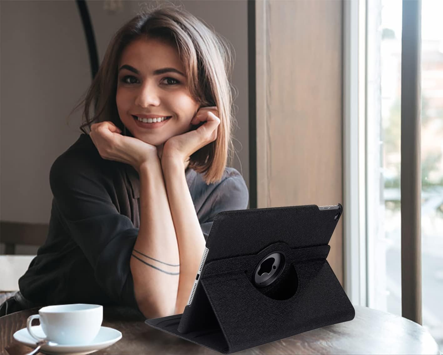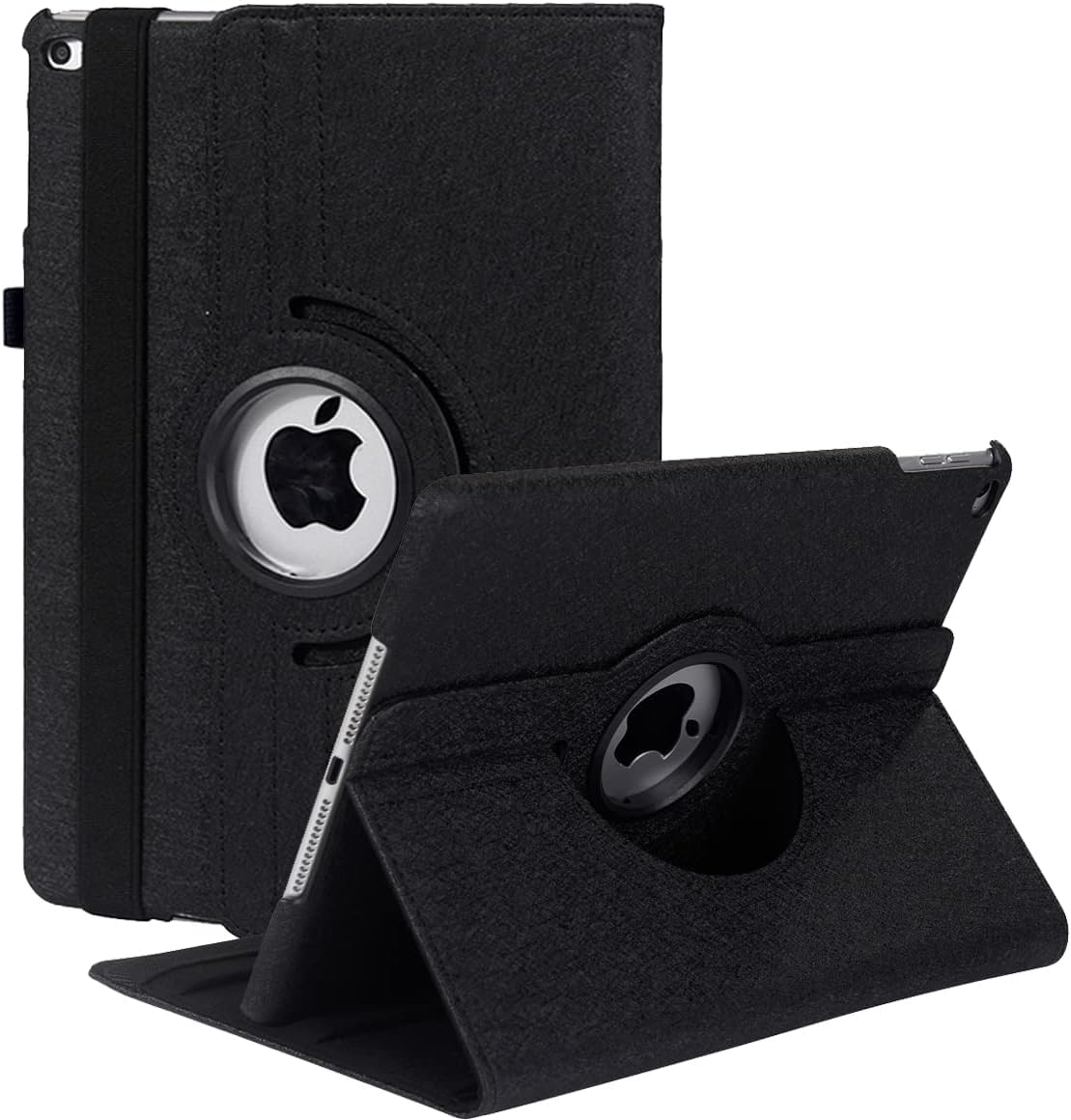 iPad 9.7 2018 2017 / iPad Air 2 / iPad Air 1 ケース iPad 9.7インチ(第6、5世代)軽量 手帳型 360度回転スタンド オートスリープ機能 3段階調節可能 固定バンド 脱落防止耐衝撃 耐久性 (黒)