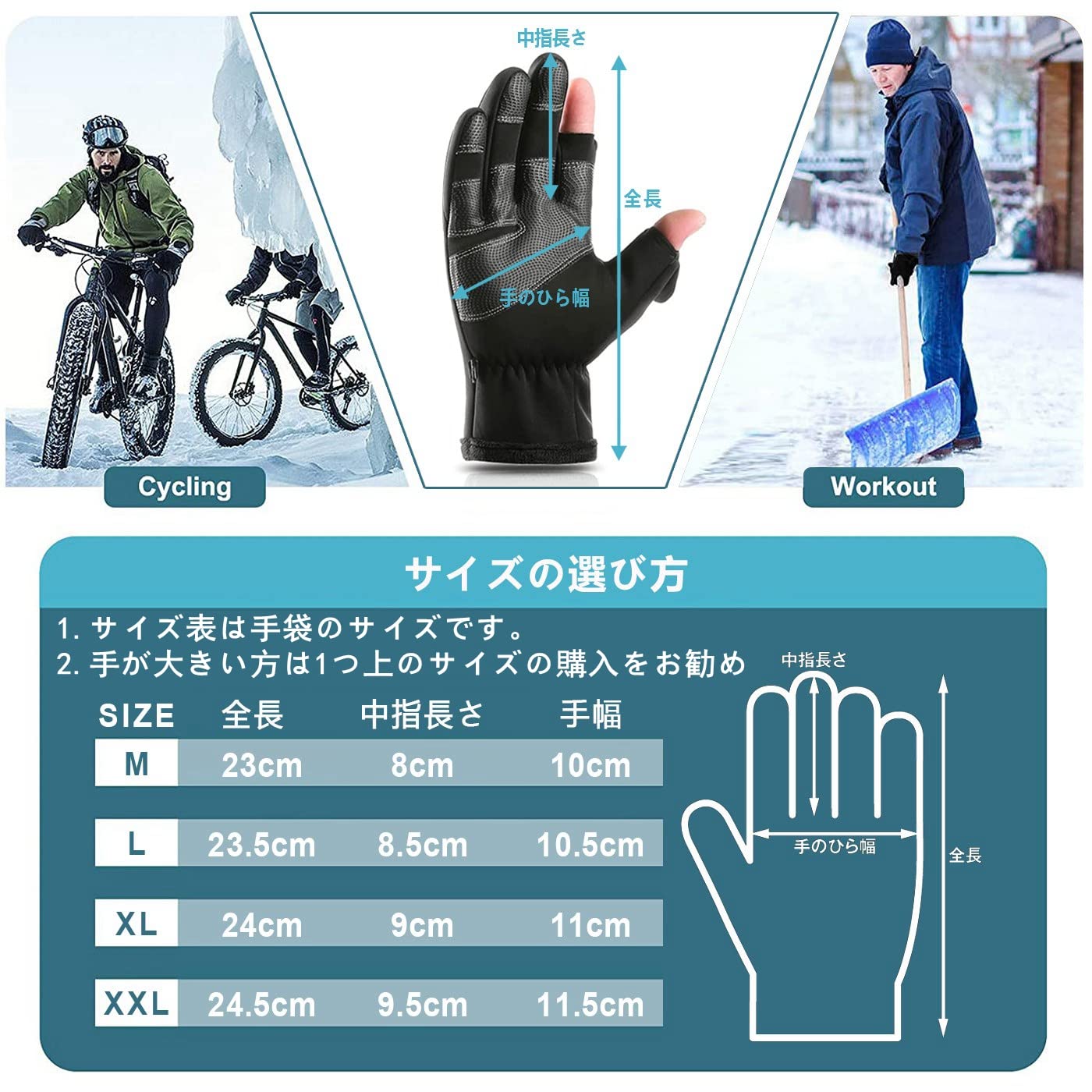 【2指出せる・楽にタッチパネル対応】人指差し指や親指の先端部分は指出せる設計で、これから寒い屋外でも手袋を装着したまま、細かい作業が楽になります。アウトドア活動に突然の着信やメールを受信した場合でもわざわざ手袋を外す必要もありませんので、とても便利です。自転車やランニング、車の運転などに適した暖かさと動きやすさを兼ね備えた着け心地のよいアウトドアグローブです。