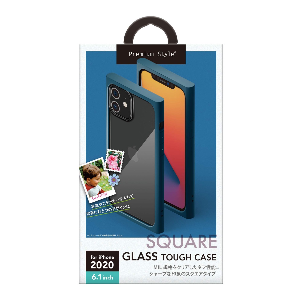 Premium Style iPhone 12/12 Pro用 ガラスタフケース スクエアタイプ ネイビー PG-20GGT08NV