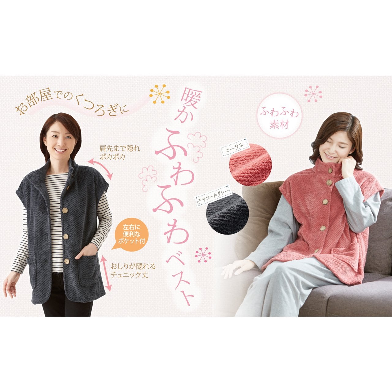 軽くてフワフワとした風合いの暖かチュニックベスト。