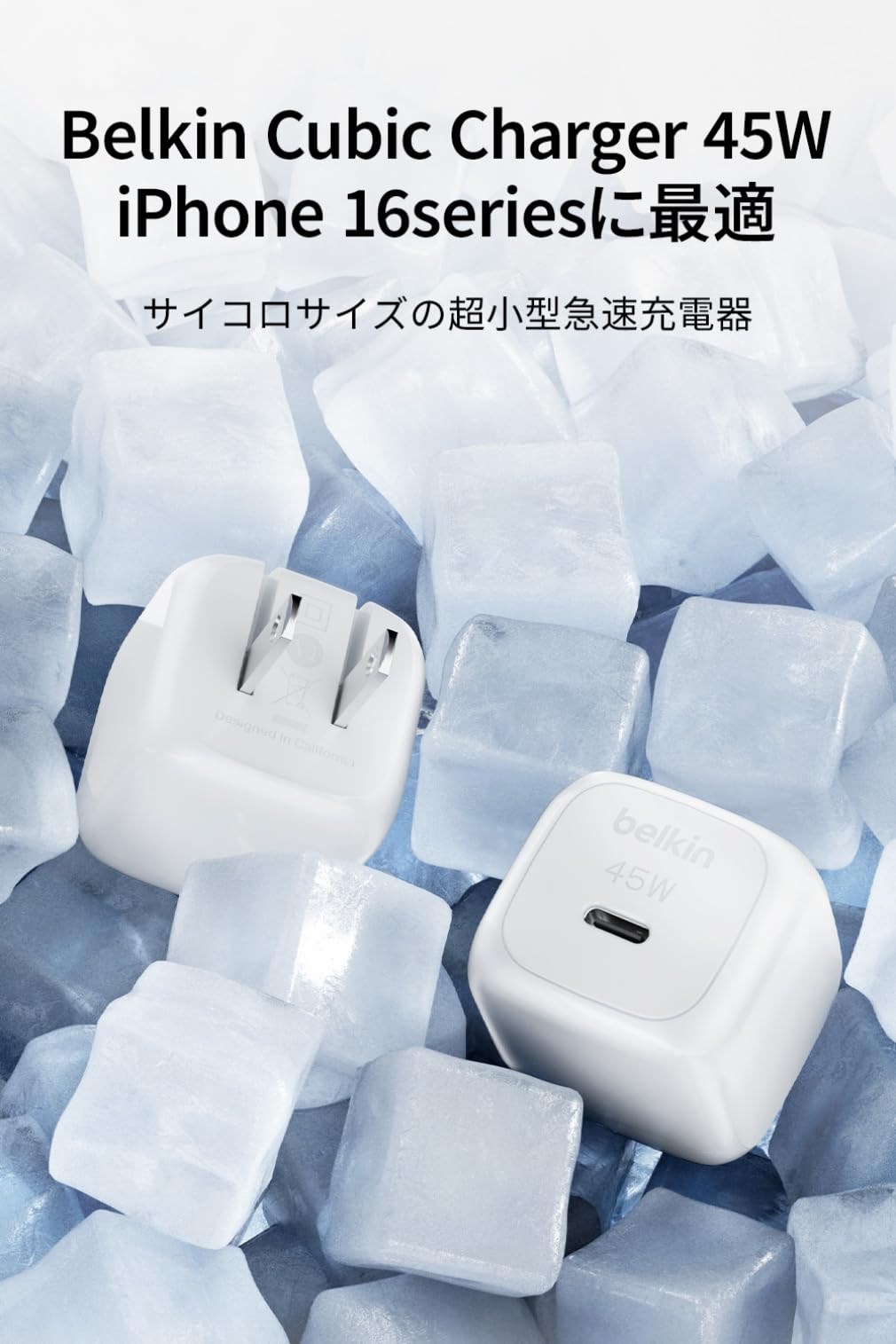 Belkin Cubic Charger 45W 充電器 USB-C PD3.1 iPhone 16 充電器 高速充電対応 PPS対応 iPad/iPhone/Androidスマホ・タブレット各種対応 旅行や出張に最適 折り畳みプラグ PSE技術基準適合 ホワイト WCA013qcWH