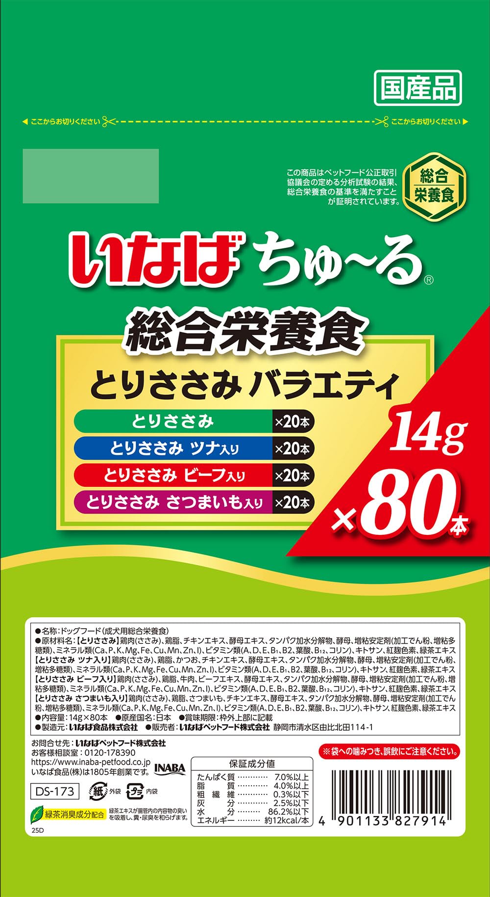 いなば ちゅ~る 総合栄養食 とりささみバラエティ 80本 犬用おやつ
