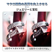 レンズ部分に装着して、内蔵LEDの光を被写体に均一に照射するようにすることでマクロ撮影能力を存分に引き出します。マクロ撮影時の照明効果を高めます。(※注:取り付けには、対応機種のフロントリングを取り外す必要があります。)
