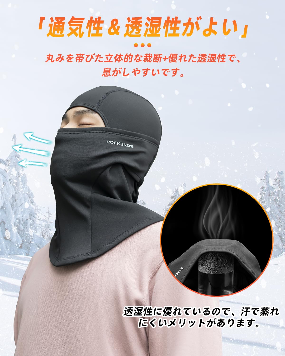 ROCKBROS バラクラバ ネックウォーマー 冬用 防寒 目出し帽 裏起毛 防風 保温 息苦しくない 伸縮性 暖かい フェイスマスク バイク 自転車 スキー スノーボード 登山 スポーツ アウトドア 男女兼用