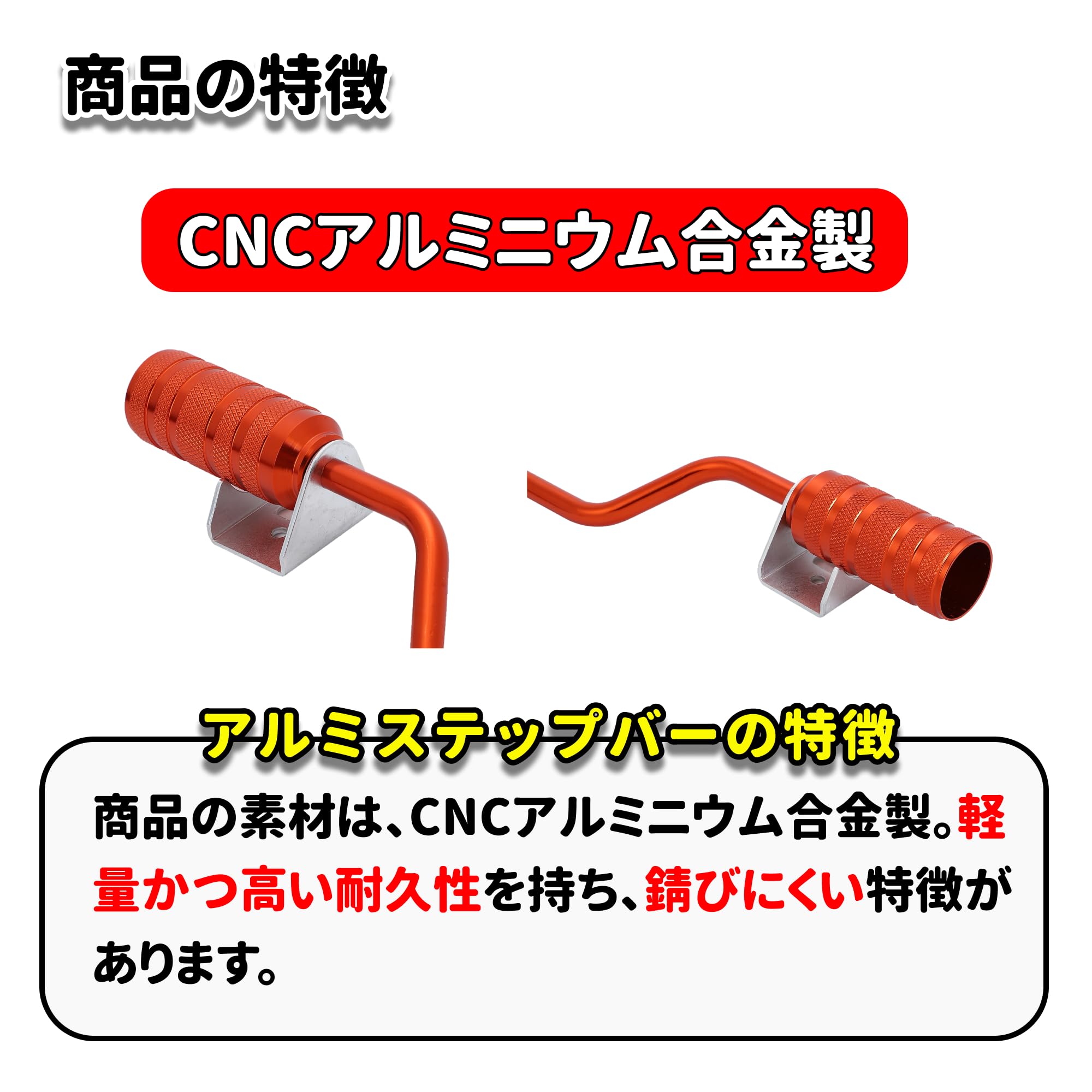 アルミ ステップバー スクーター ズーマー X アドレス V100 V125 DIO JOG ジャイロ キャノピー アクシス トゥデイ ZZ フットステップ フットペグ 汎用 社外品 (オレンジ)