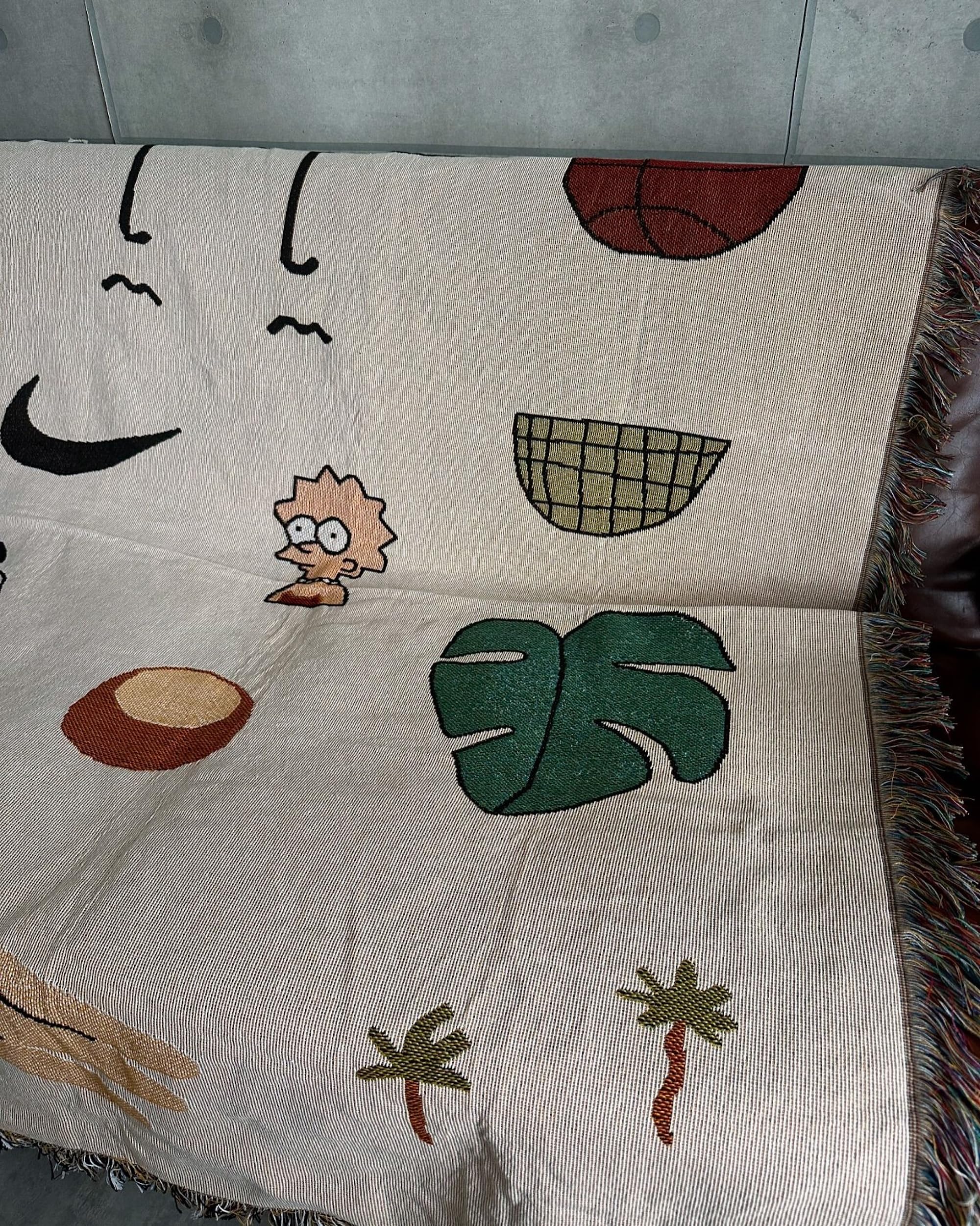 Peel Forest 面白い 柄 おしゃれ ブランケット シンプソンズ ラグ 北欧ひざ掛けベージュ (130X160cm)