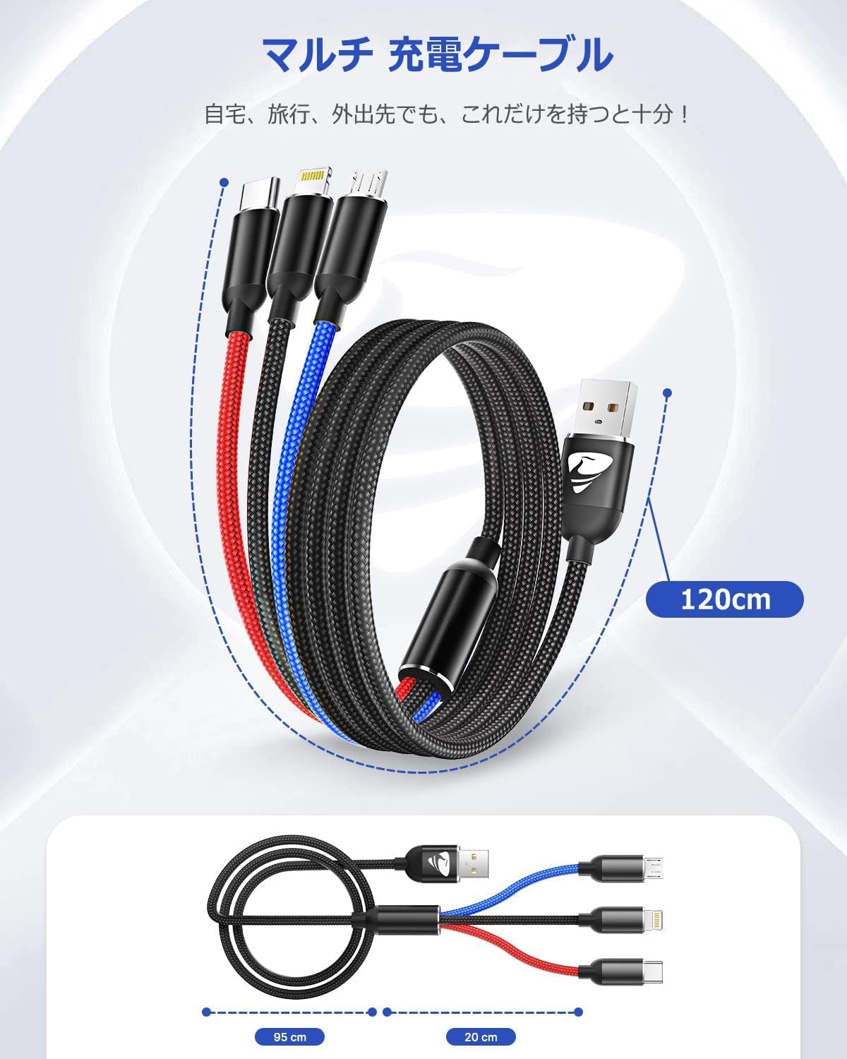 【▶18ヶ月間メーカー】パッケージには、1.2mの3in1 USBケーブルが2本あります。お買い上げ日より、18ヶ月間に何か仕様上の不具合が生じた場合、お気軽にお問い合わせください。