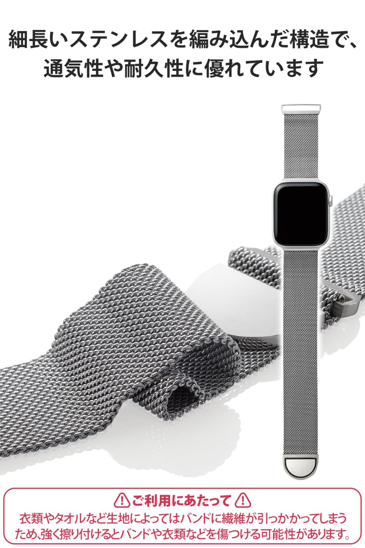 【在庫処分】エレコム Apple Watch アップルウォッチ バンド ステンレス 編み込み マグネットバックル 工具無し 49mm 45mm 44mm 42mm 【 Ultra Series 8 7 SE2 SE 6 5 4 3 2 1 対応】 シルバー AWW45BDSSMSV | ニコニコSHOP