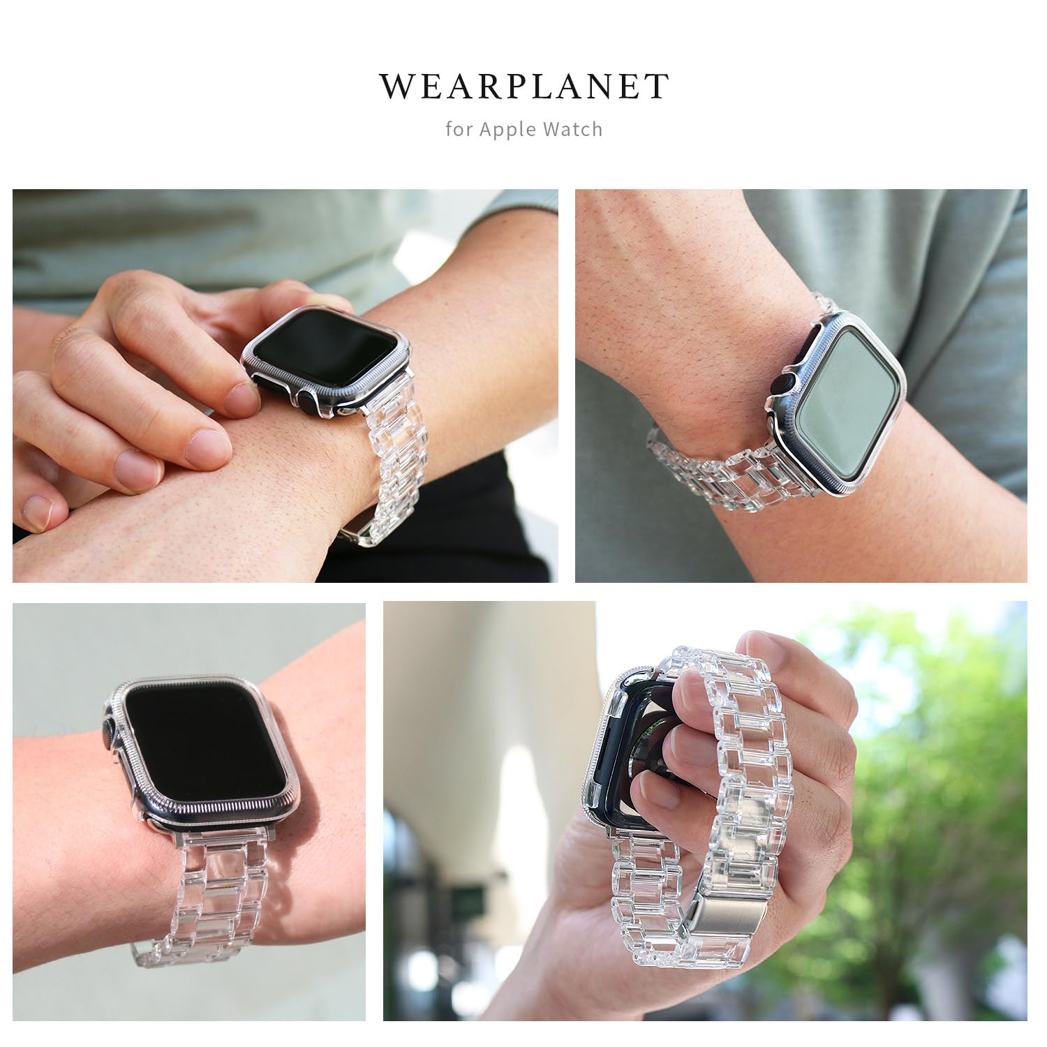 WEARPLANET(ウェアプラネット)の「保護ケース付きクリアチェーンバンド」は、透明度の高い素材を使用したクリアカラーが爽やかなApple Watchバンドです。