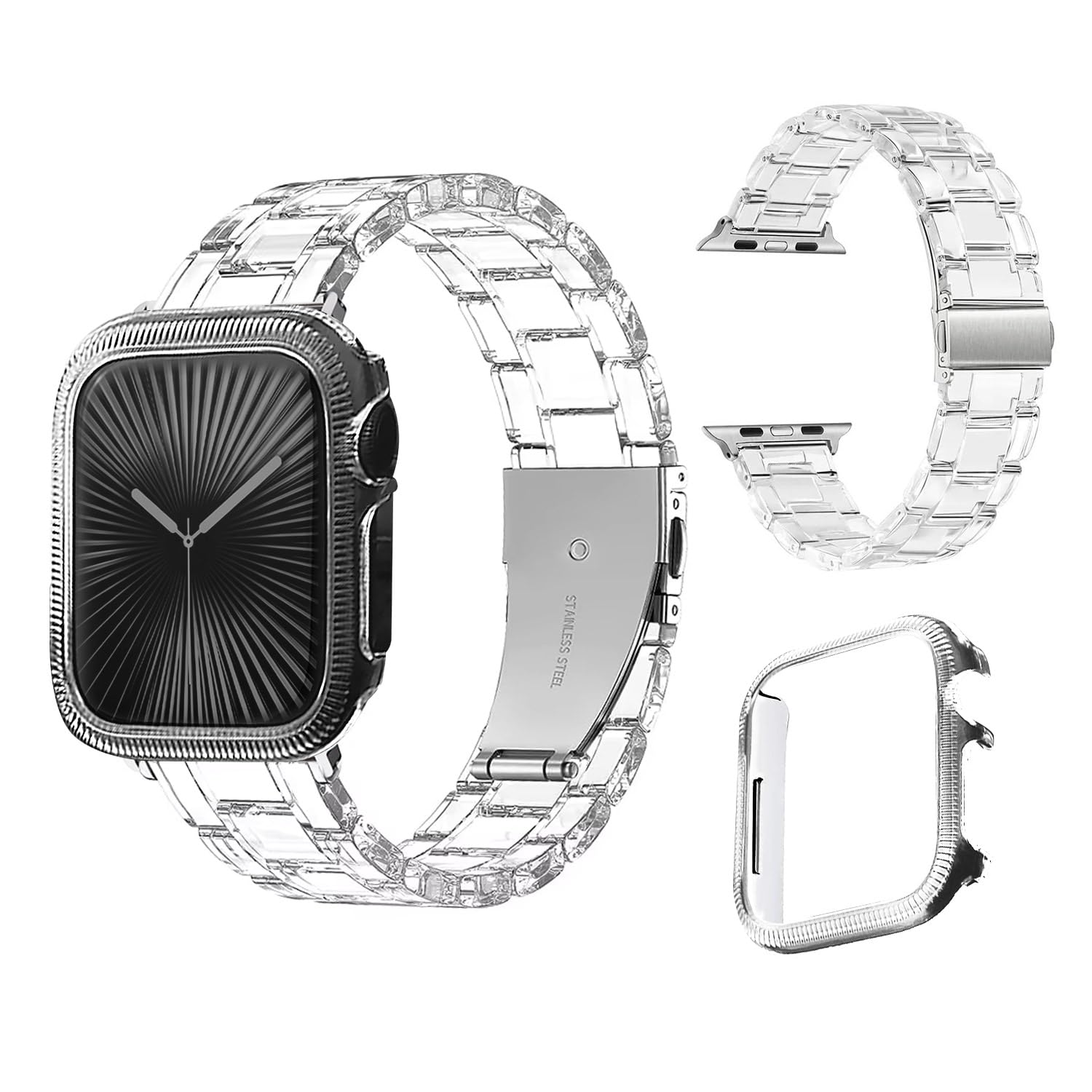 ウェアプラネット(Wearplanet) 保護ケース付きクリアチェーンバンド for Apple Watch 40mm クリア