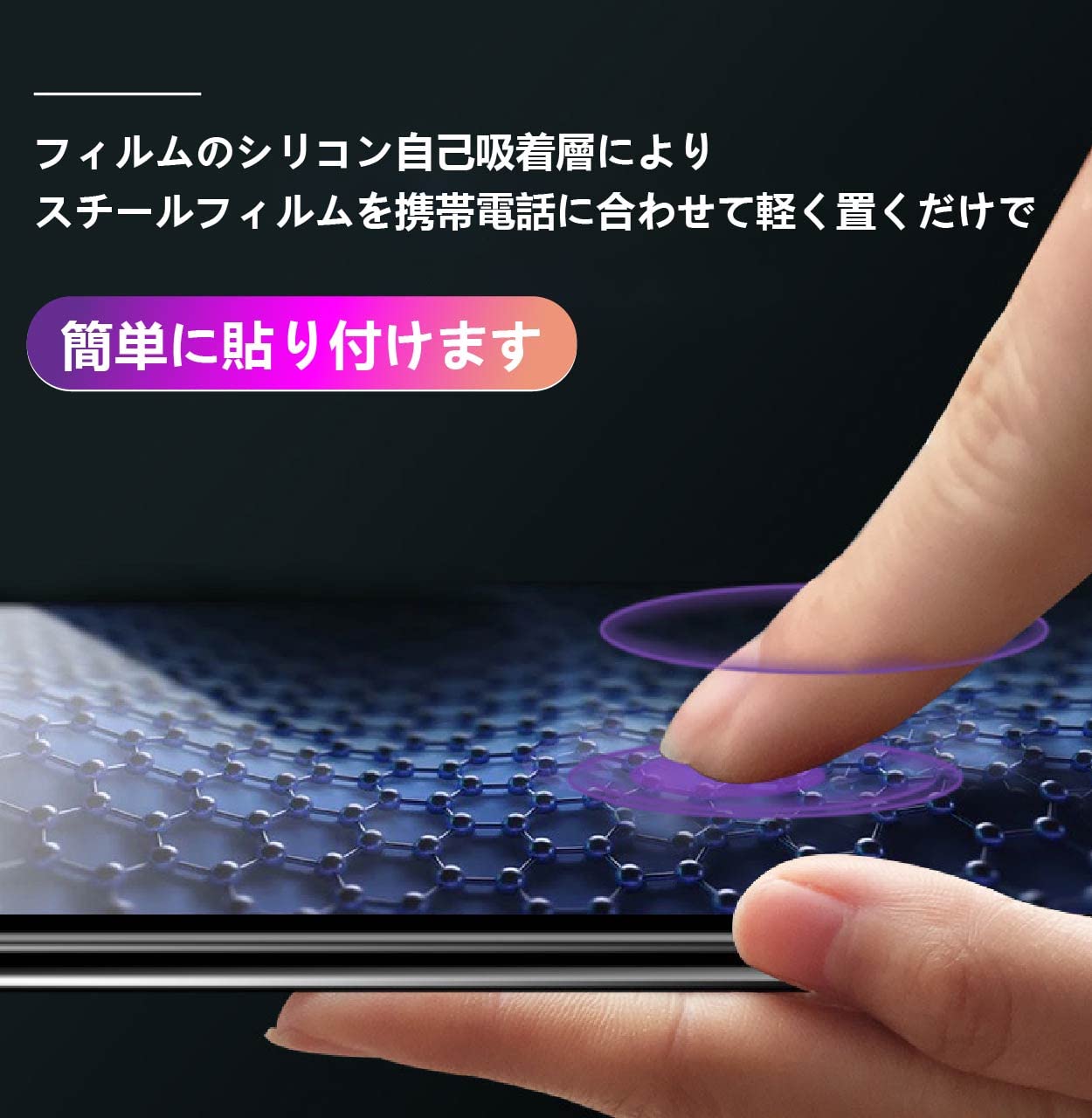 【簡単に貼り付けます】フィルムのシリコン自己吸着層により、スチールフィルムを携帯電話に合わせて軽く置くだけで、気泡が入らないように簡単に取り付けられます。