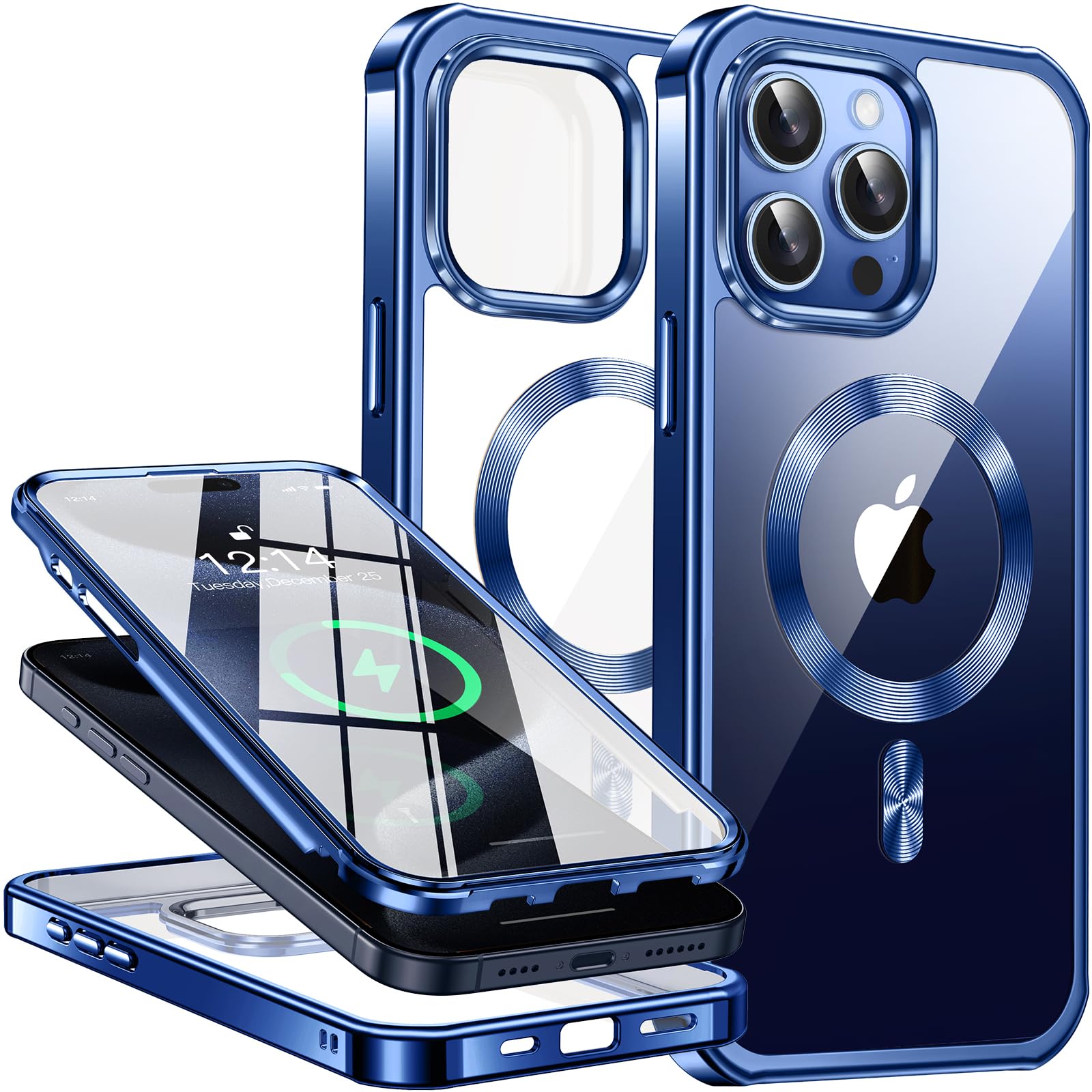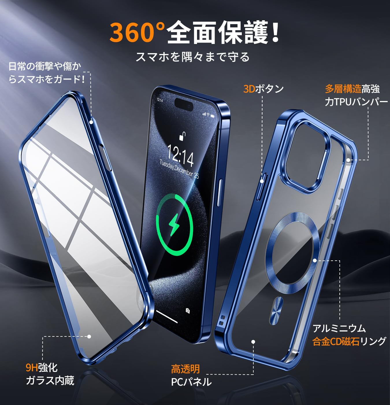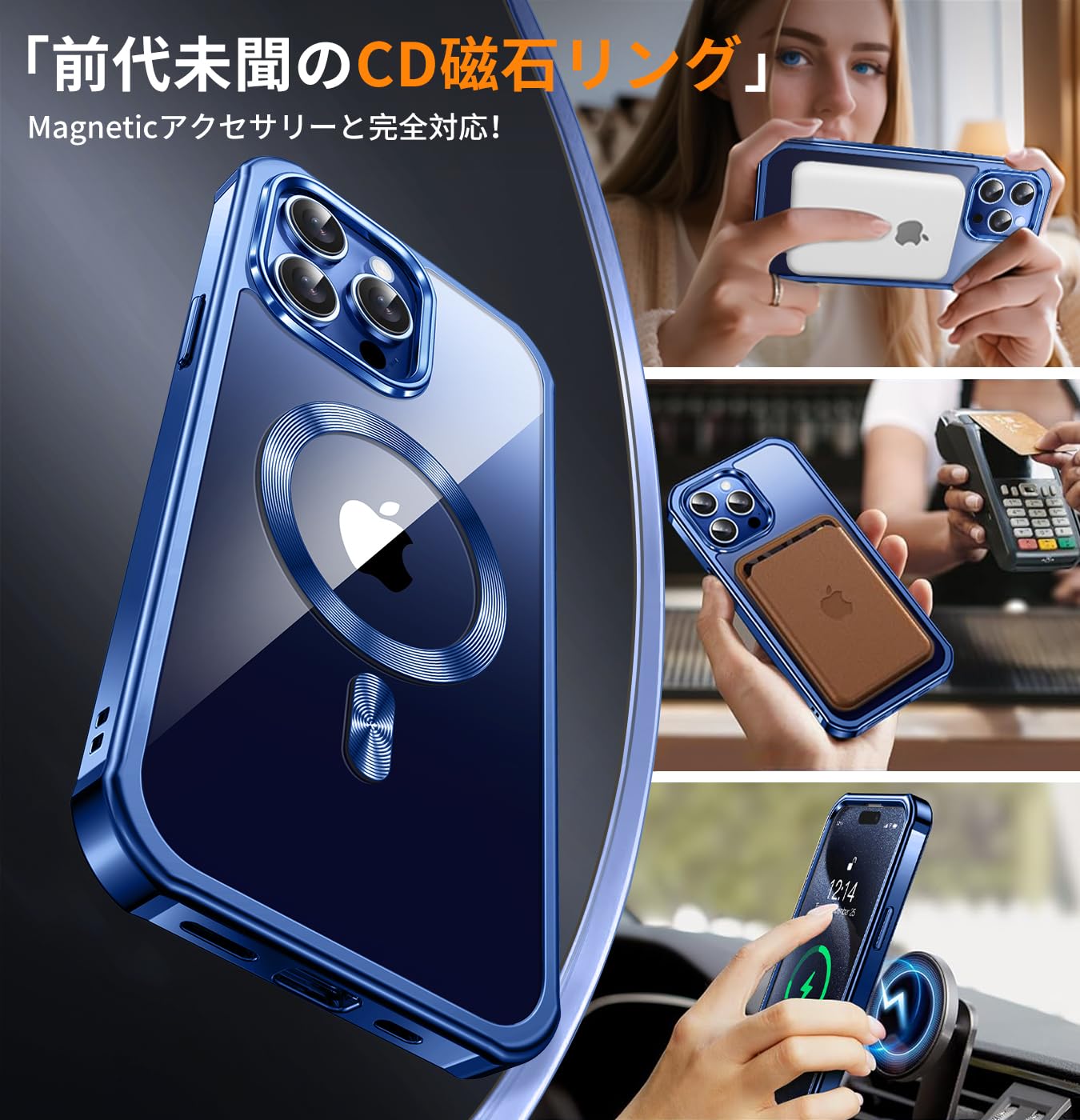 【在庫処分】【両面保護・MagSafe対応】FONKCASE iPhone15 Pro Max 用 ケース ストラップホール付き【本体の色・CDリング】メッキバンパー クリア PC背面 黄変防止 アイホン15プロマックスケース 全面保護 カバー 耐衝撃 タッチ感度良い ワイヤレス充電対応 人気 アイフォン15 Pro Max 用 カバー 6.7インチ(ディープブルー) | ニコニコSHOP